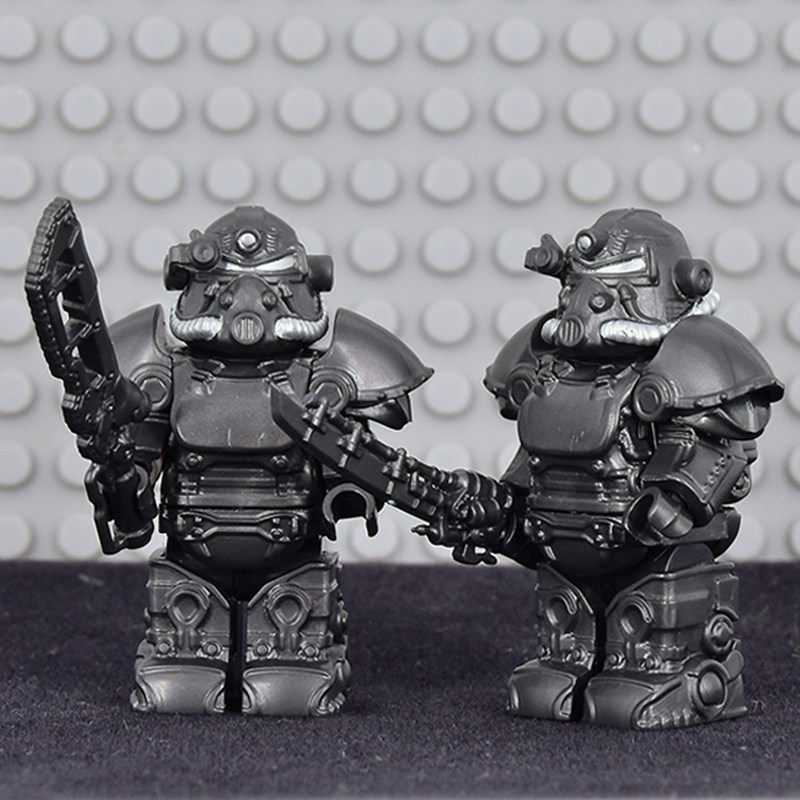 📚 军事三方小人仔辐射动力盔甲装甲T51积木模型手办武器枪玩具科幻