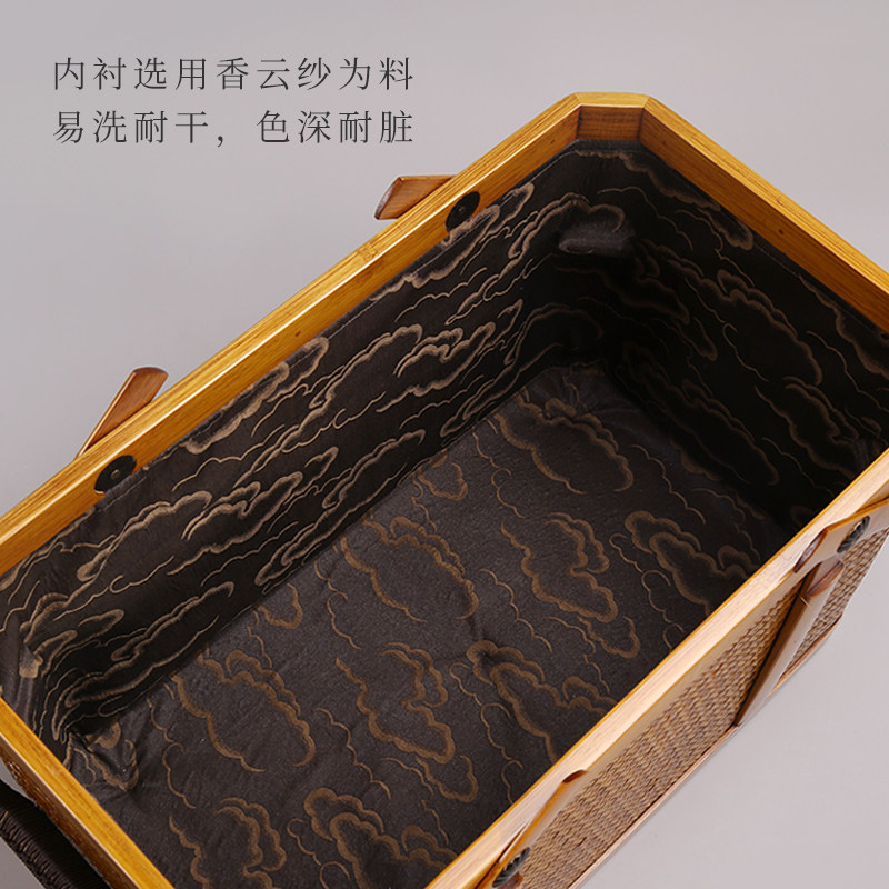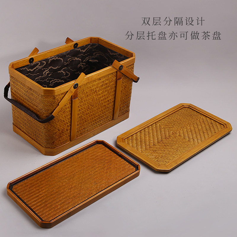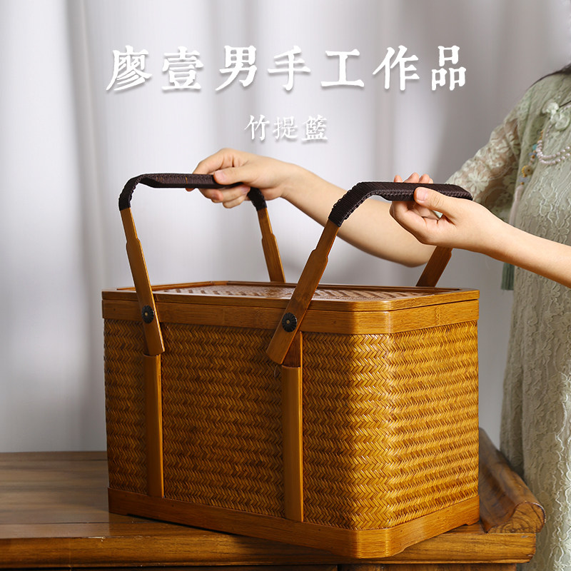 📚 中国台湾省竹艺师廖壹男 手作孟宗竹提蓝茶会茶具户外携带筐复古