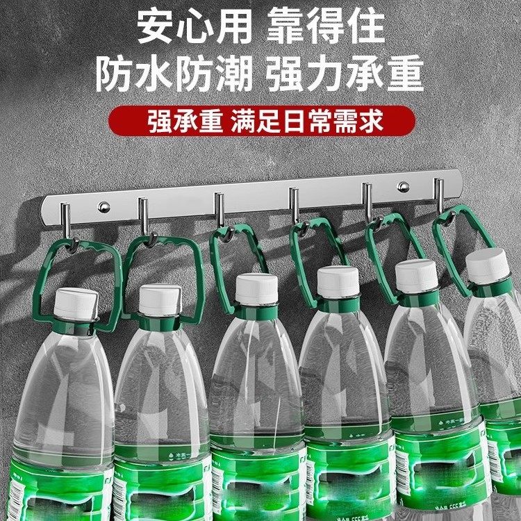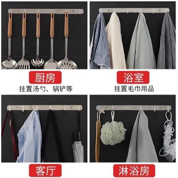 📚 不锈钢连排挂钩厨房墙壁排钩浴室挂衣架可打孔强力承重联排挂钩