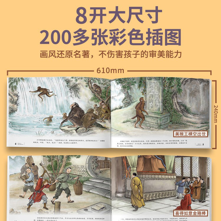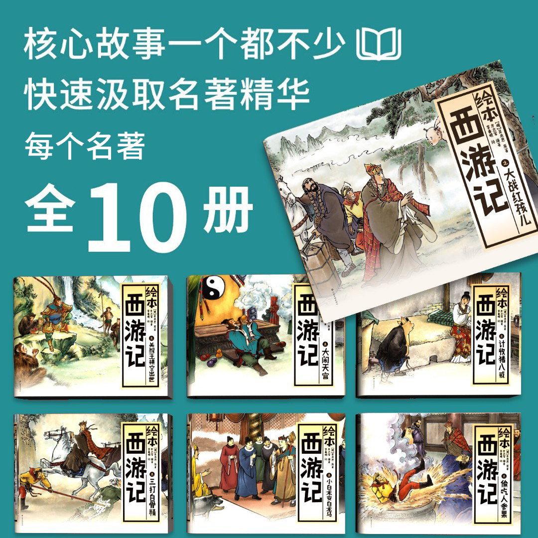 📚 纸贵满堂四大名著儿童书籍三国演义小学生版水浒传儿童读物红楼梦西游记儿童绘本5一6岁幼儿园绘本阅读7-8-9岁故事书连环画彩绘