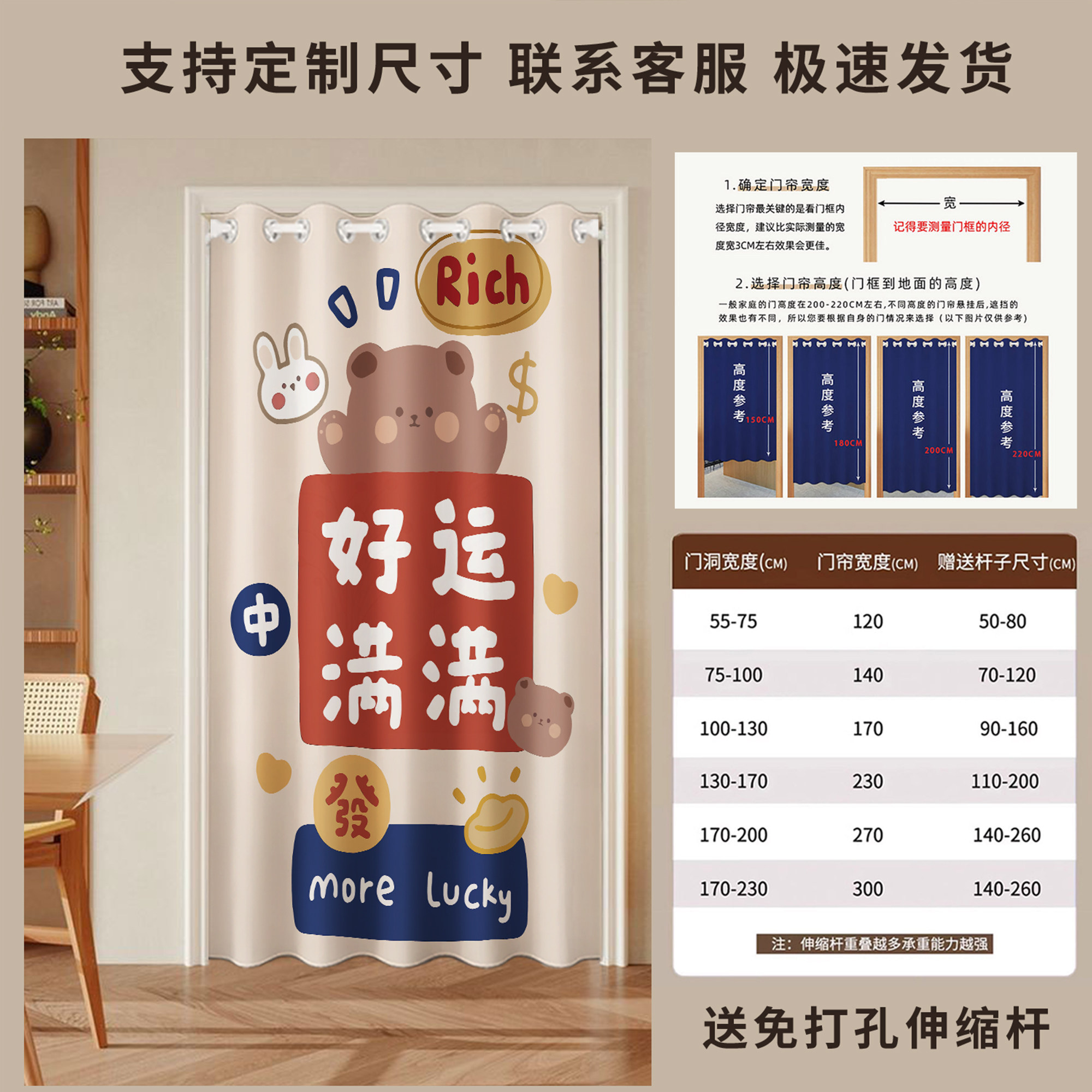 📚 店铺商用挡风门帘隔断帘家用厨房免打孔卧室遮挡帘子房间窗帘布帘