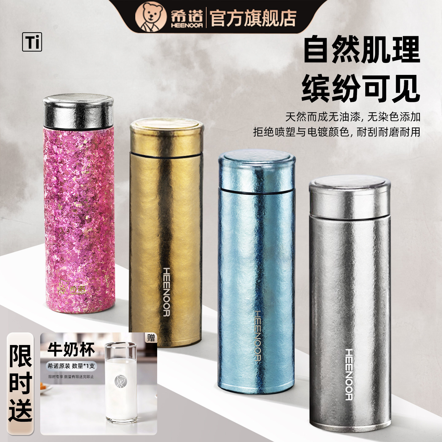 📚 希诺保温杯高档钛杯纯钛车载泡茶杯保冷养生杯子男女士家用水杯