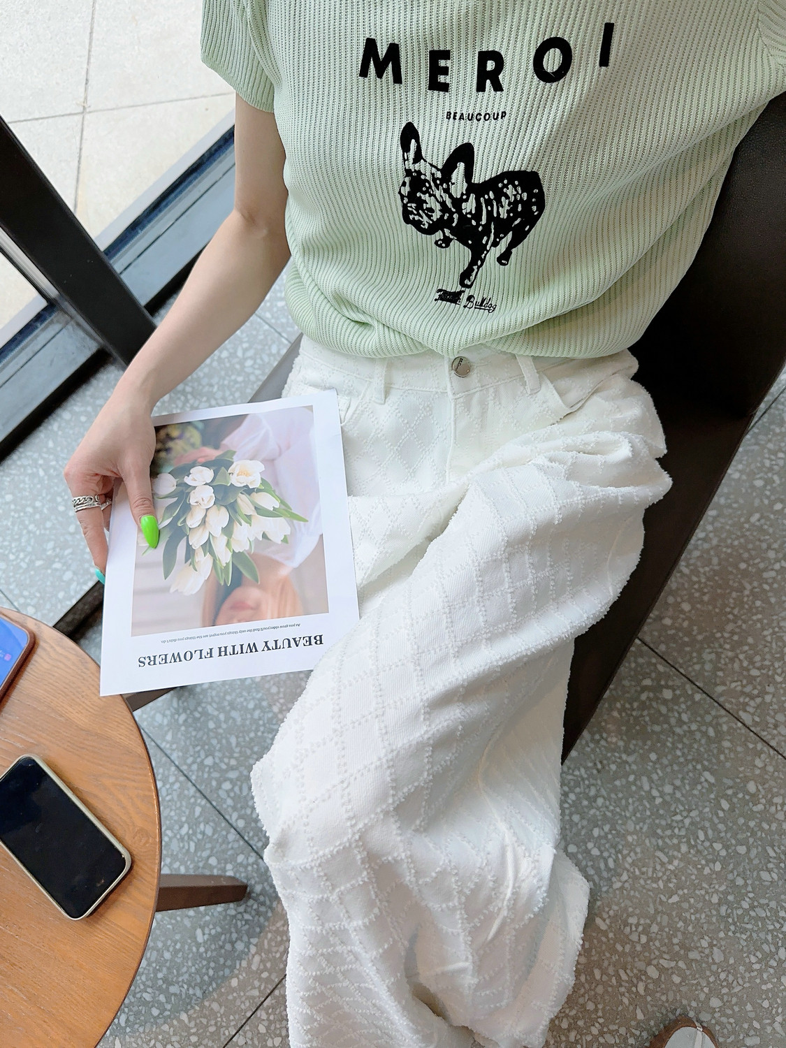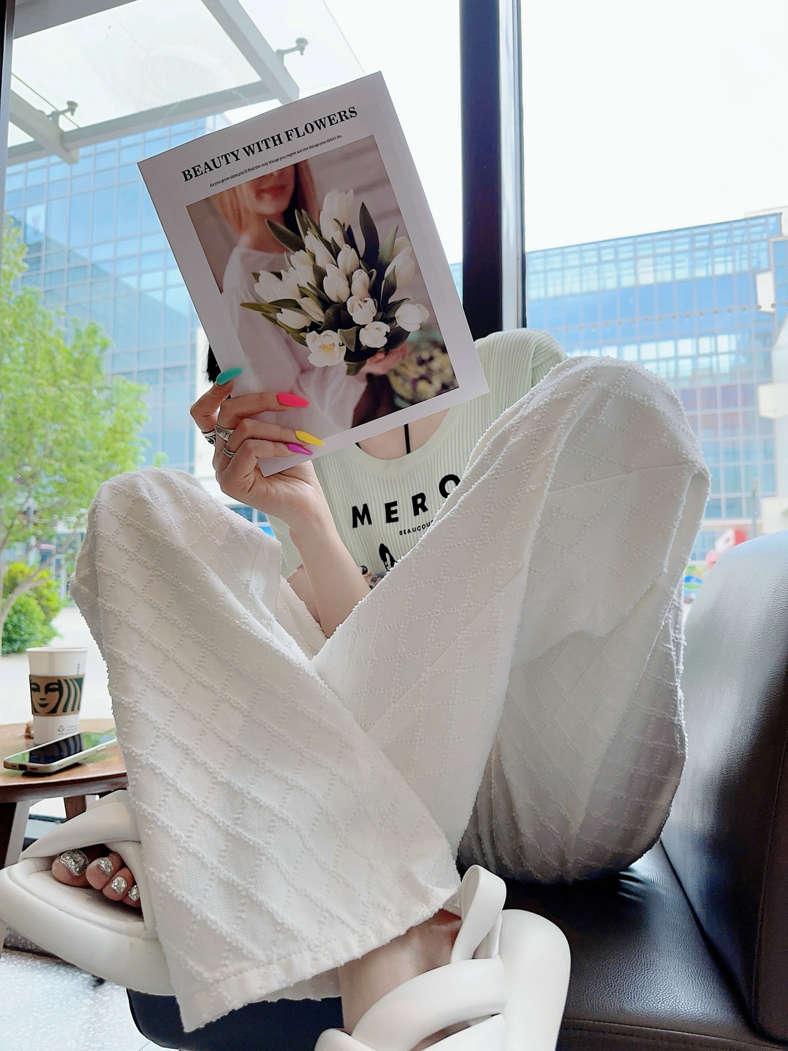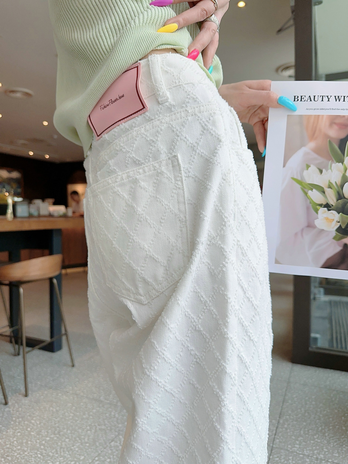 📚 猫猫家加长女裤夏季薄款白色菱形格直筒牛仔裤设计感阔腿拖地裤