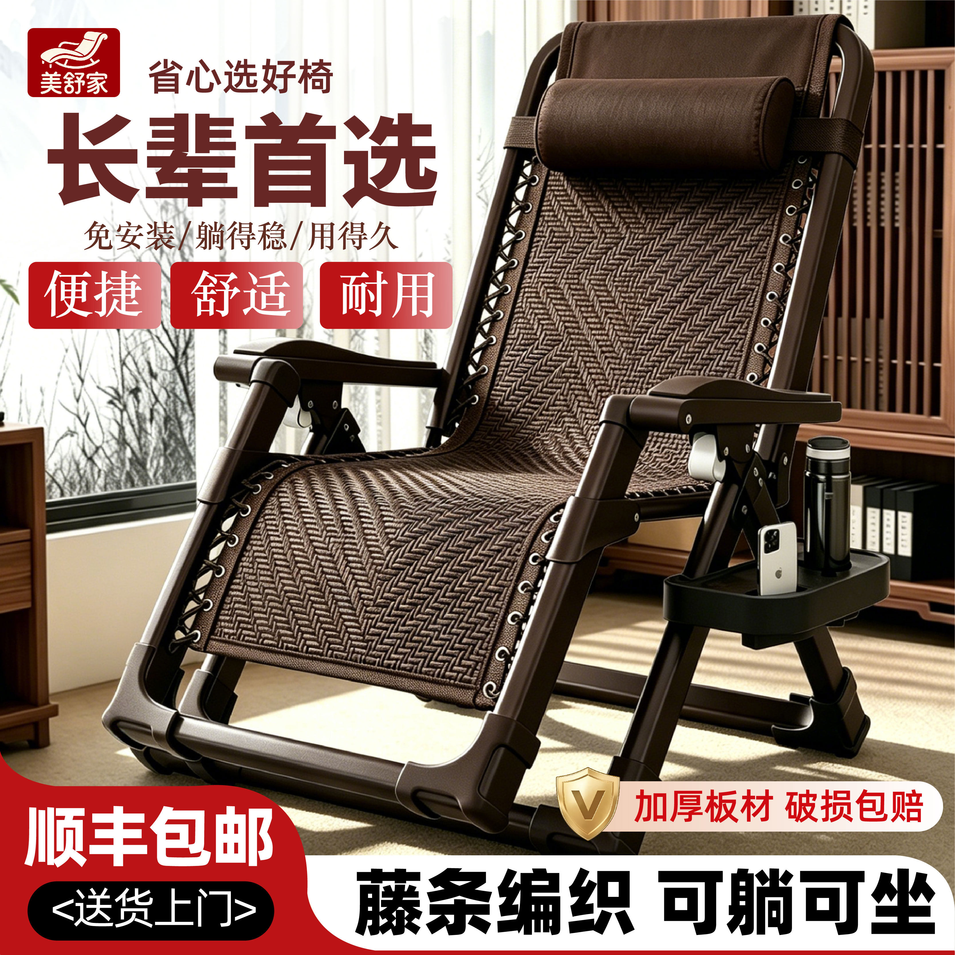 📚 藤椅午休折叠躺椅夏天午休办公室坐睡两用懒人阳台老人家用午睡椅