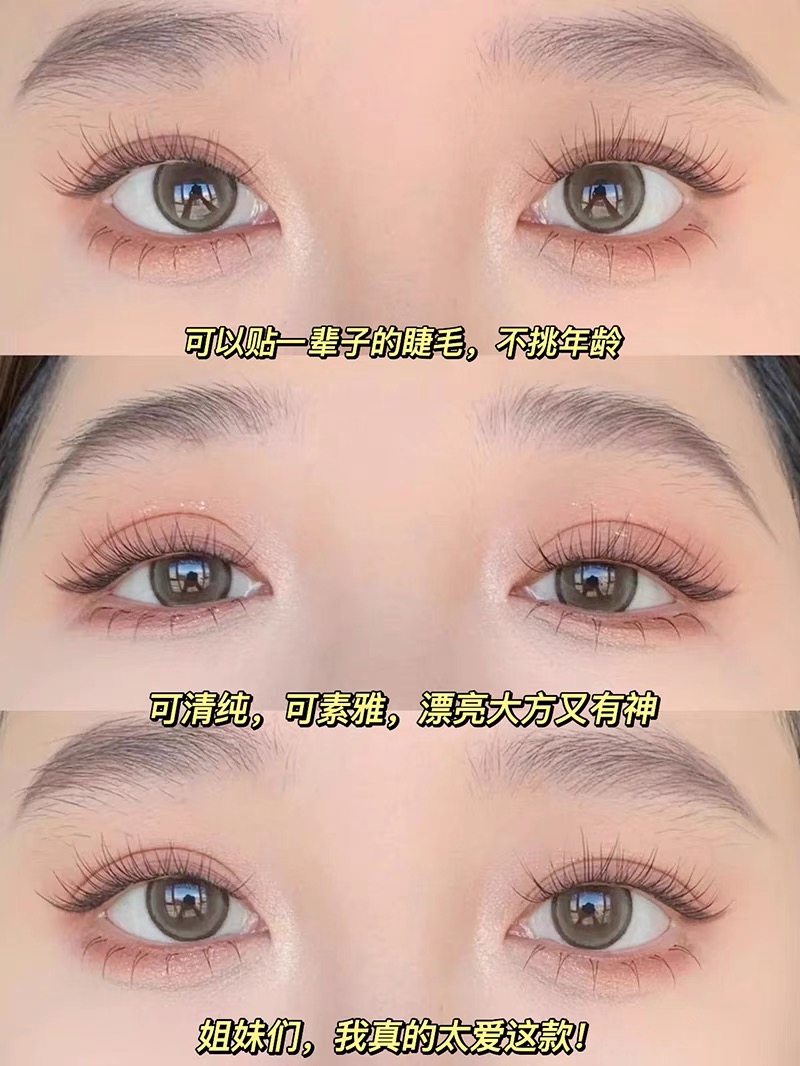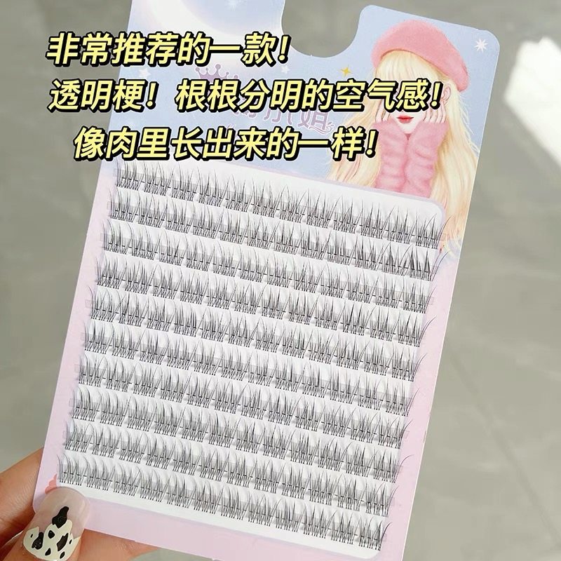 📚 8-9mm根根分明!巨自然鱼尾假睫毛仿真透明梗淡妆素颜太阳花分段