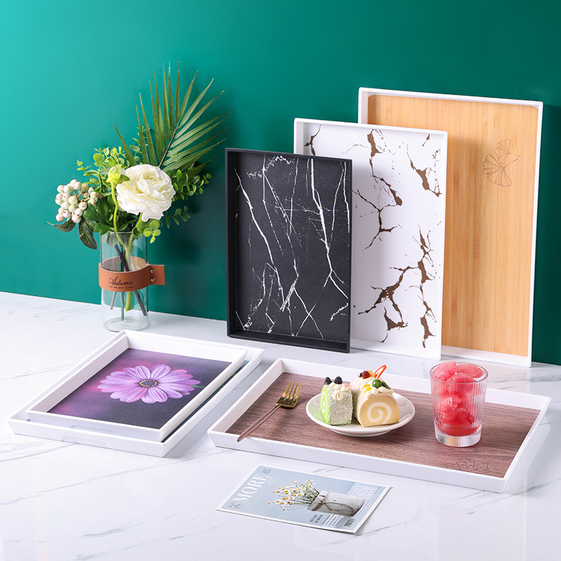📚 密胺茶托盘家用茶杯水杯子杯具客厅长方形水果盘子塑料餐桌收纳盘