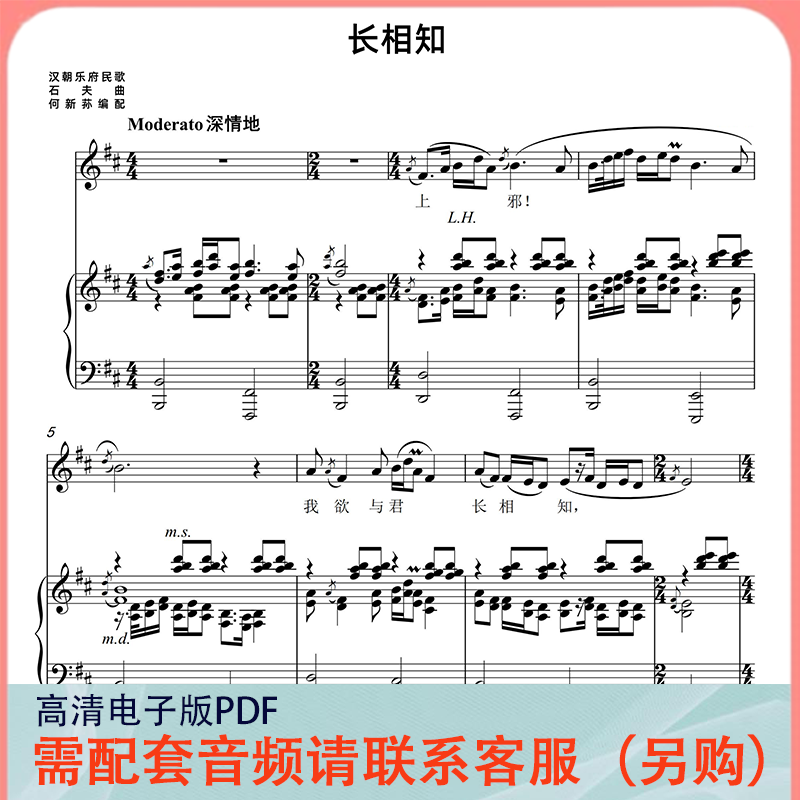 📚 长相知 D/降D/降E/E调 声乐正谱五线谱钢琴伴奏谱乐谱