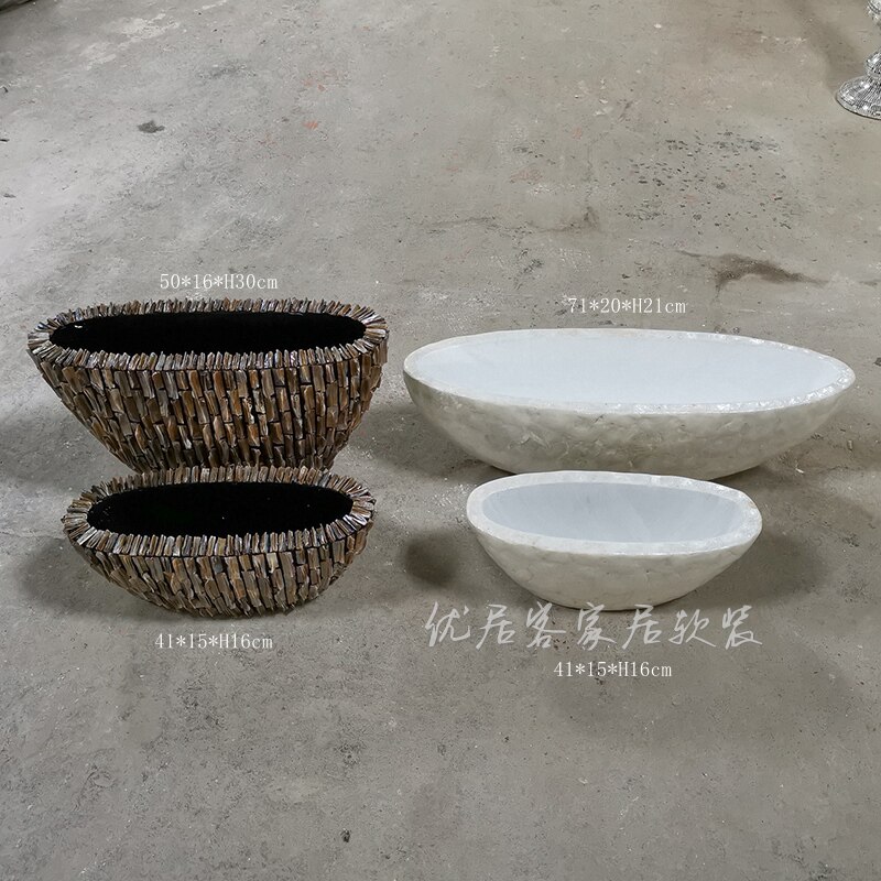 📚 船形现代玻璃钢大型装饰花瓶简约花盆干花插花客厅酒店书房装饰品