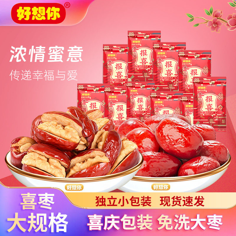 📚 好想你婚庆喜枣报喜红枣1088g袋装灰枣蜜枣结婚喜礼枣夹核桃礼包