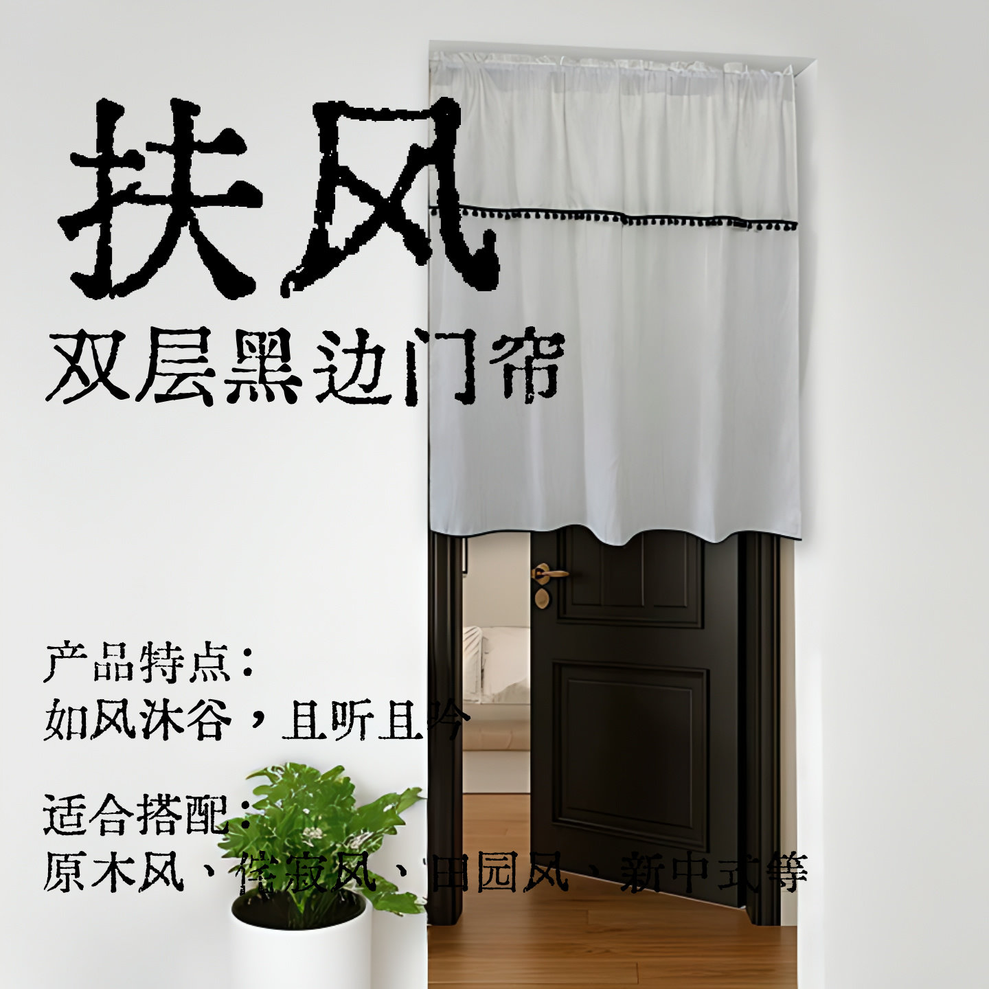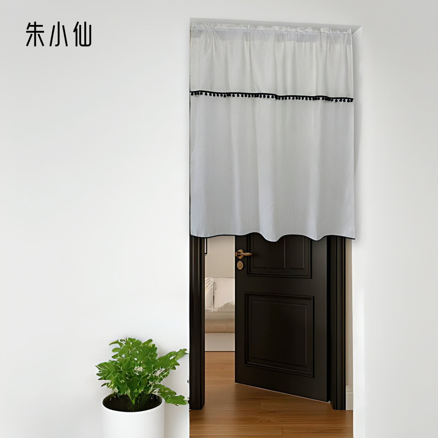 📚 朱小仙扶风纱双层亚麻门帘隔断窗帘半帘原木风民宿装饰黑边免打孔