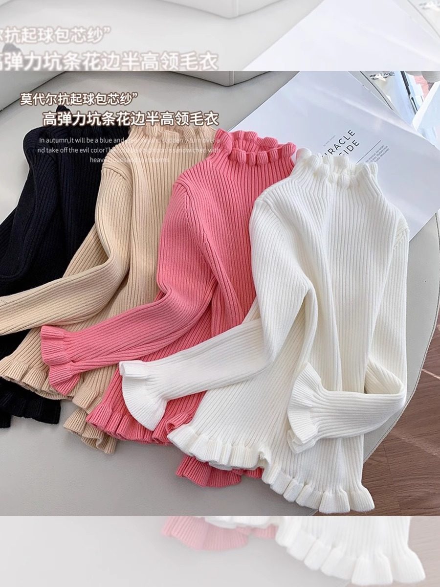 📚 女童高领毛衣秋冬2025新款洋气小女孩打底衫花边领针织短款上衣