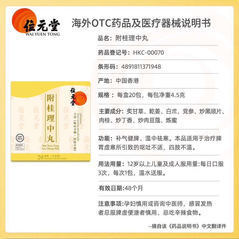 📚 中国香港位元堂桂附理中丸浓缩丸附桂汉方中成药健脾官方旗舰店