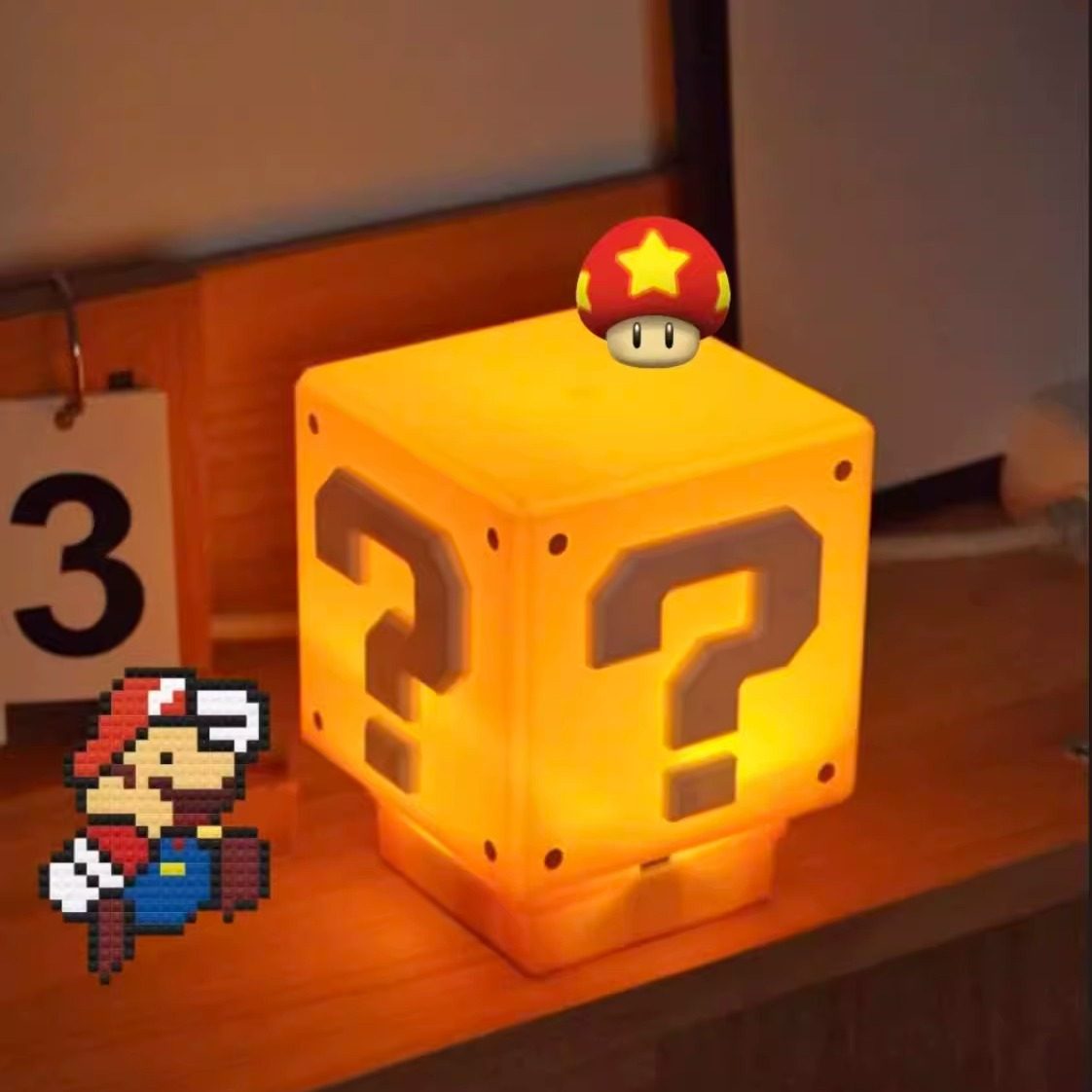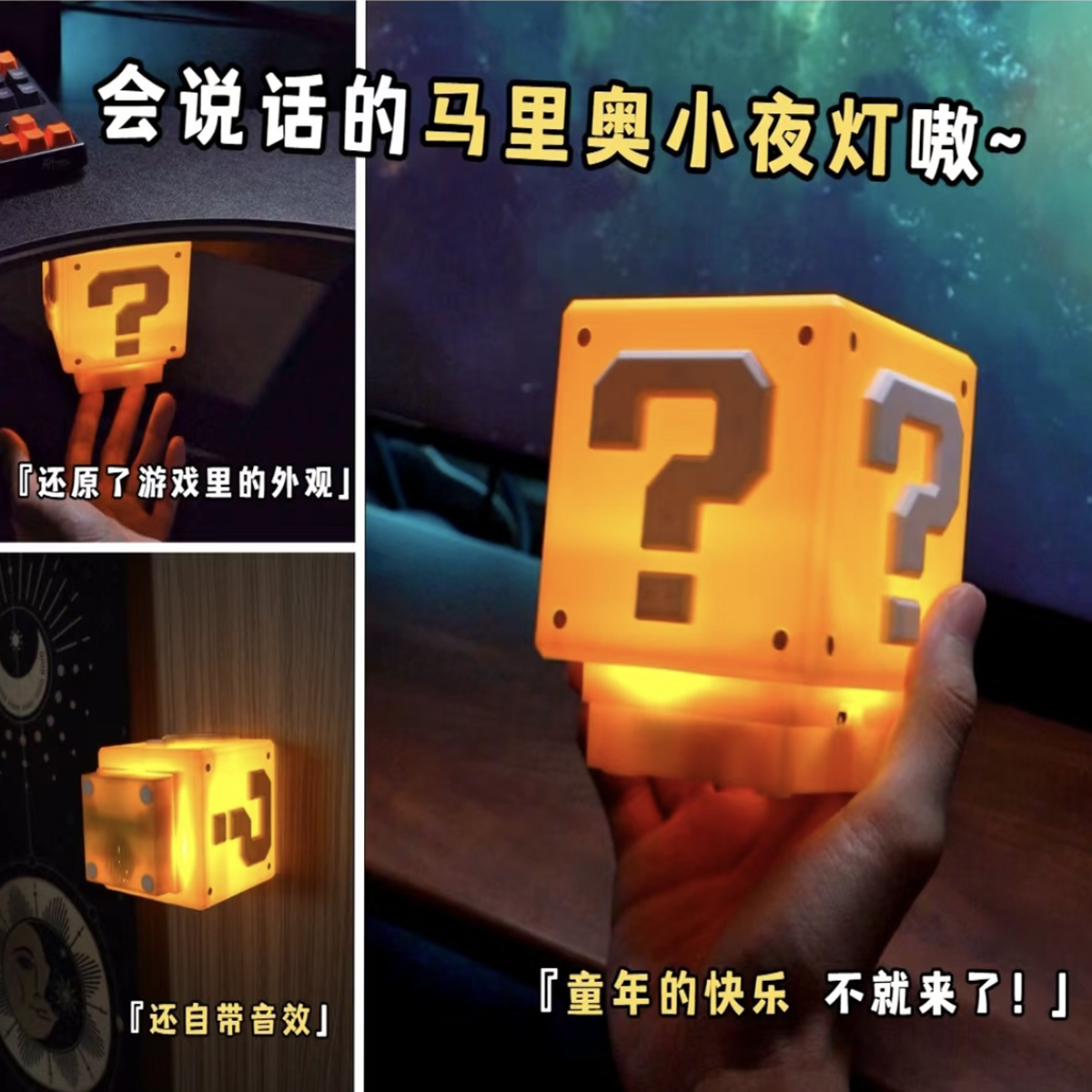 📚 马里奥夜灯问号超级玛丽发声卡通小夜灯方块砖床头装饰桌面氛围灯