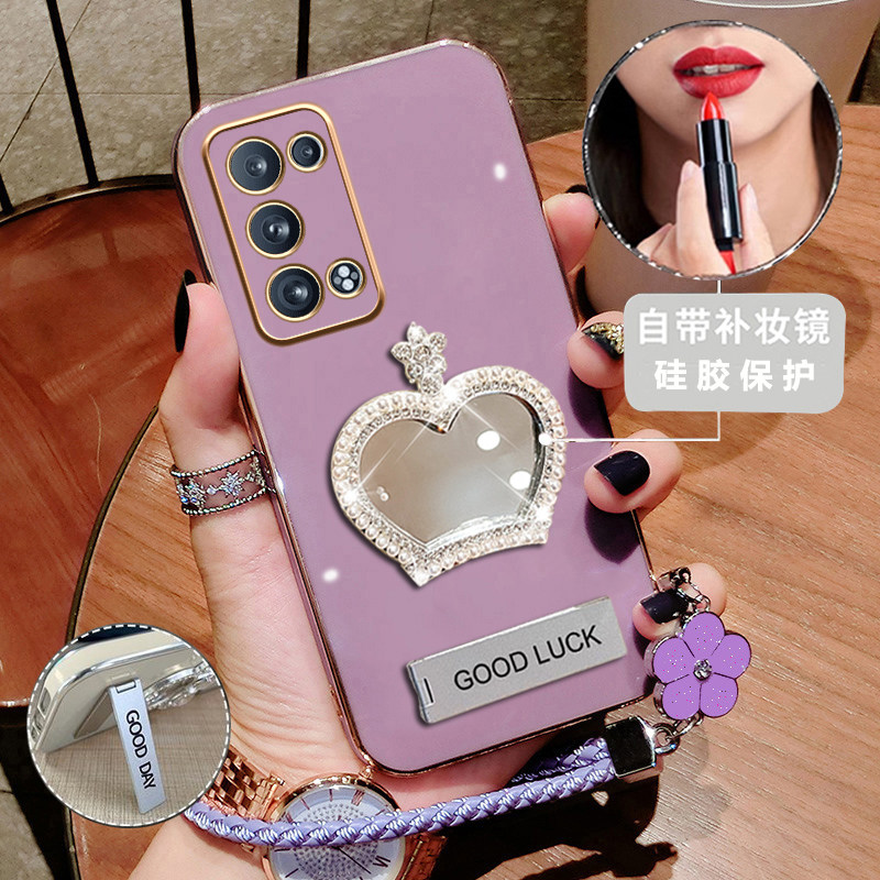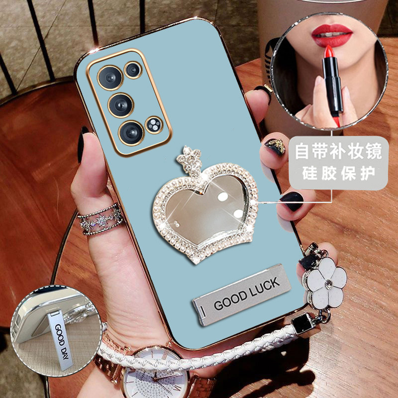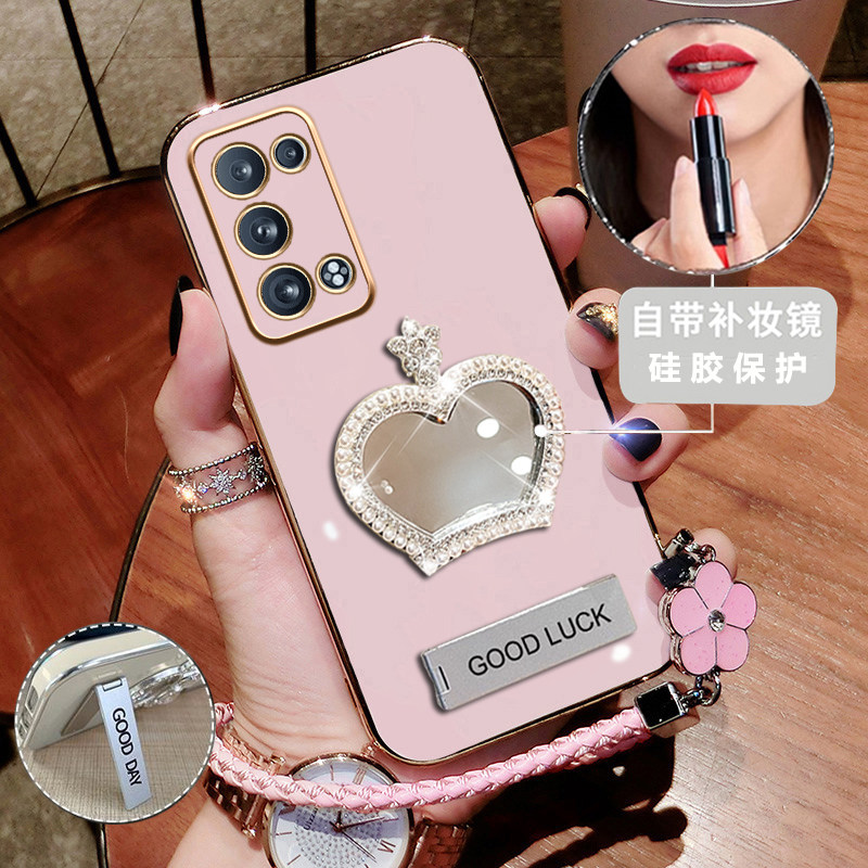 📚 适用 opporeno6手机壳PEQM00硅胶补妆镜reno6pro新款保护套5G全包opporeon外壳peqm00潮女reon6带支架65g高档