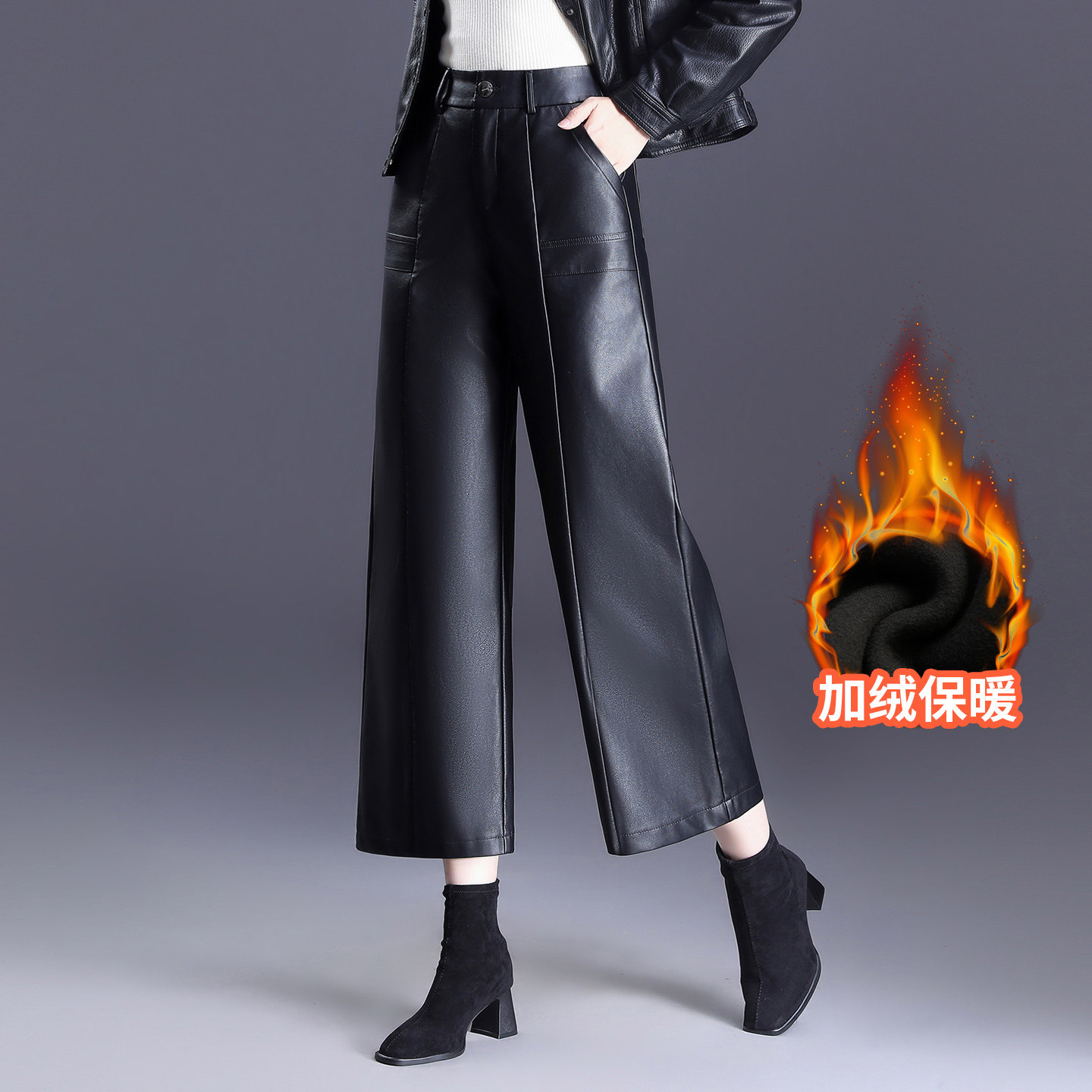 💥秋冬新宠!加绒皮裤小个子八分裤,券后价99秒变时尚达人💫