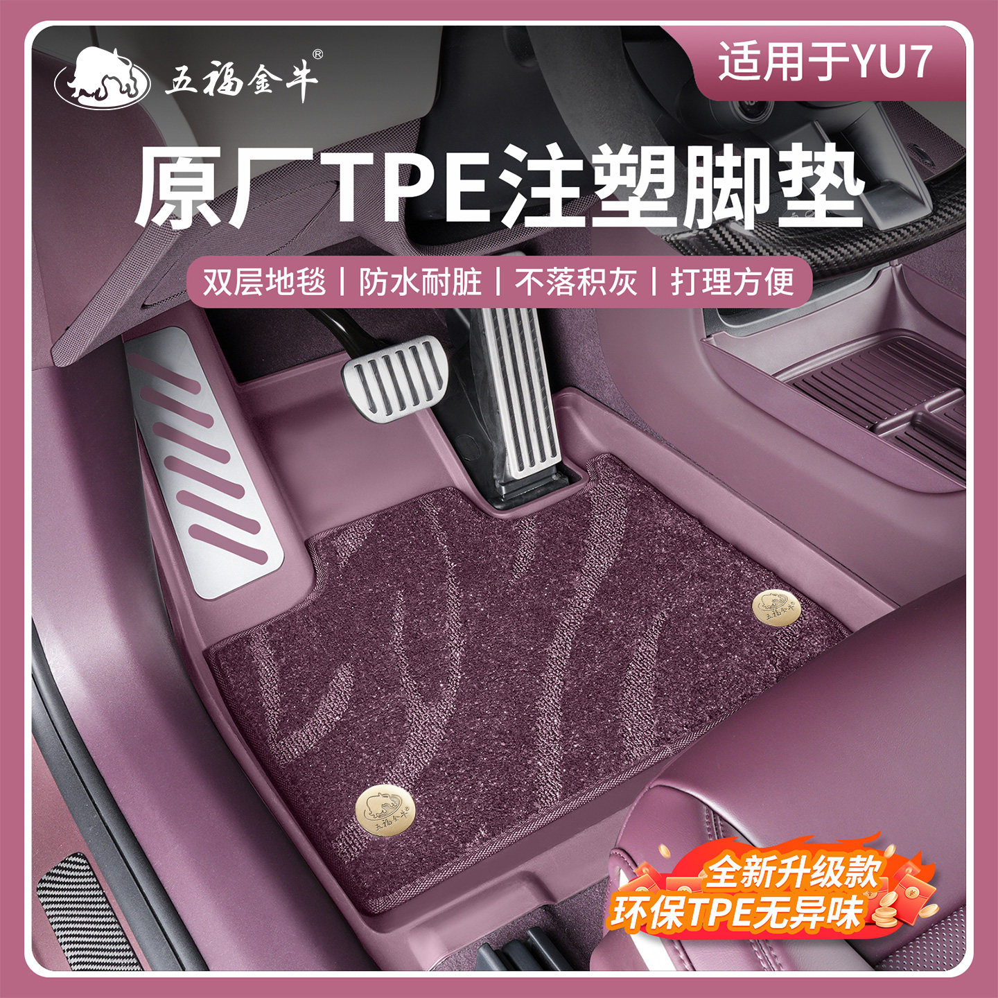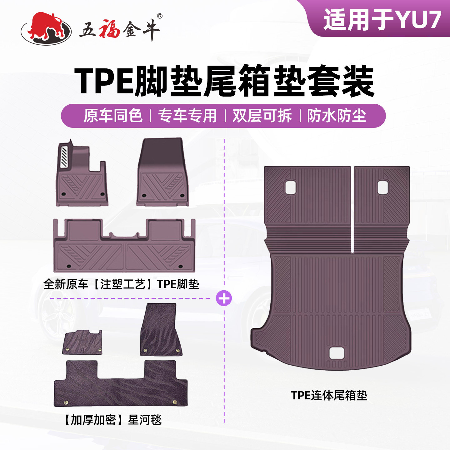📚 五福金牛注塑TPE脚垫大包围适用于小米YU7前后备箱垫SU7汽车配件