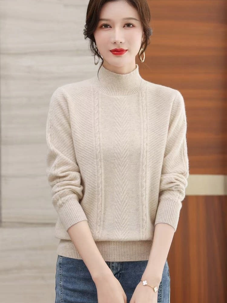 📚 专柜正品双鹿羊毛衫女半高领秋冬新款羊驼绒加厚针织衫时尚毛衣红
