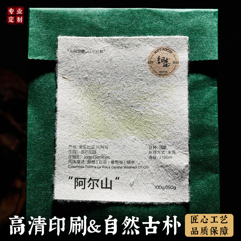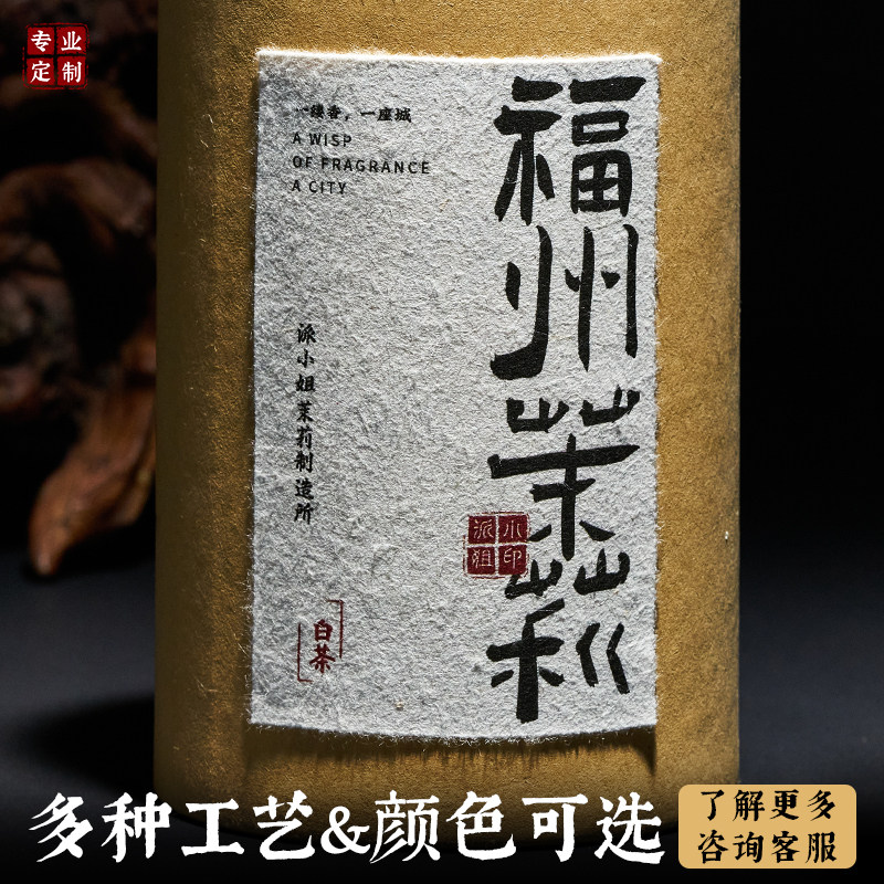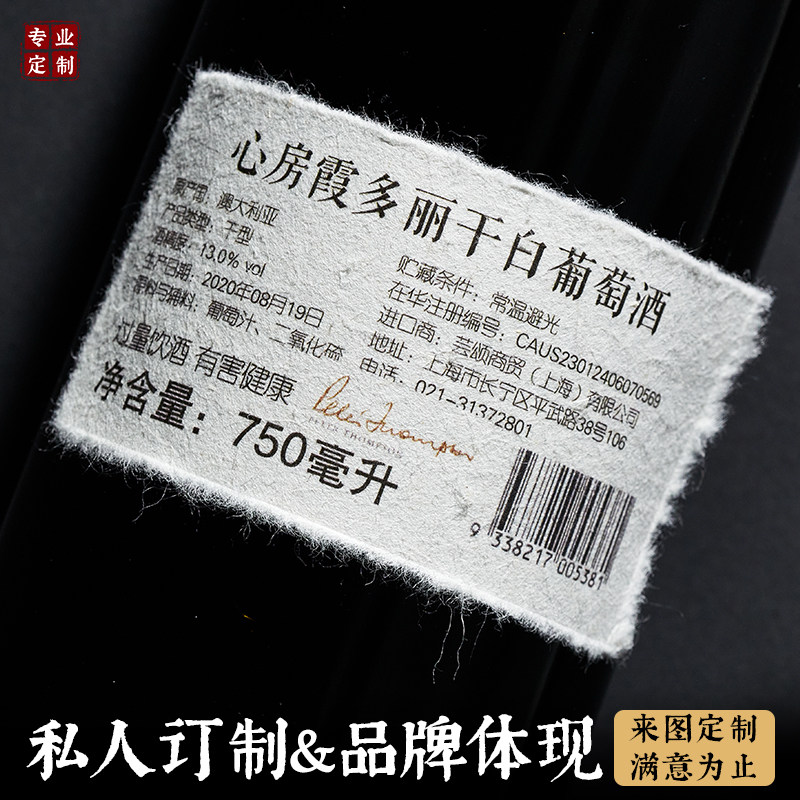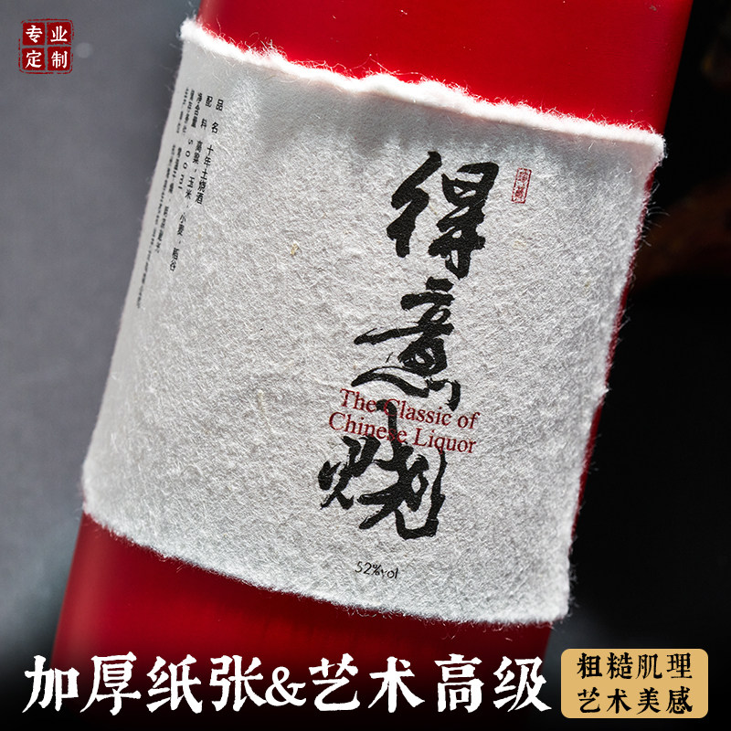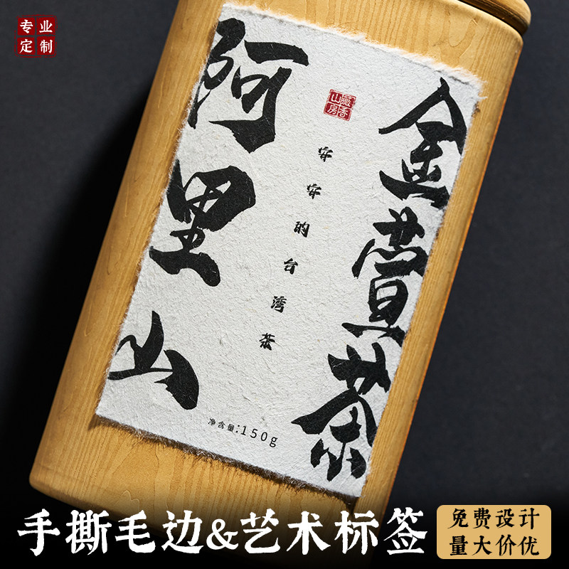 📚 毛边纸标签定制日式手撕加厚纸茶叶包装酒标烫金复古压印贴纸定做