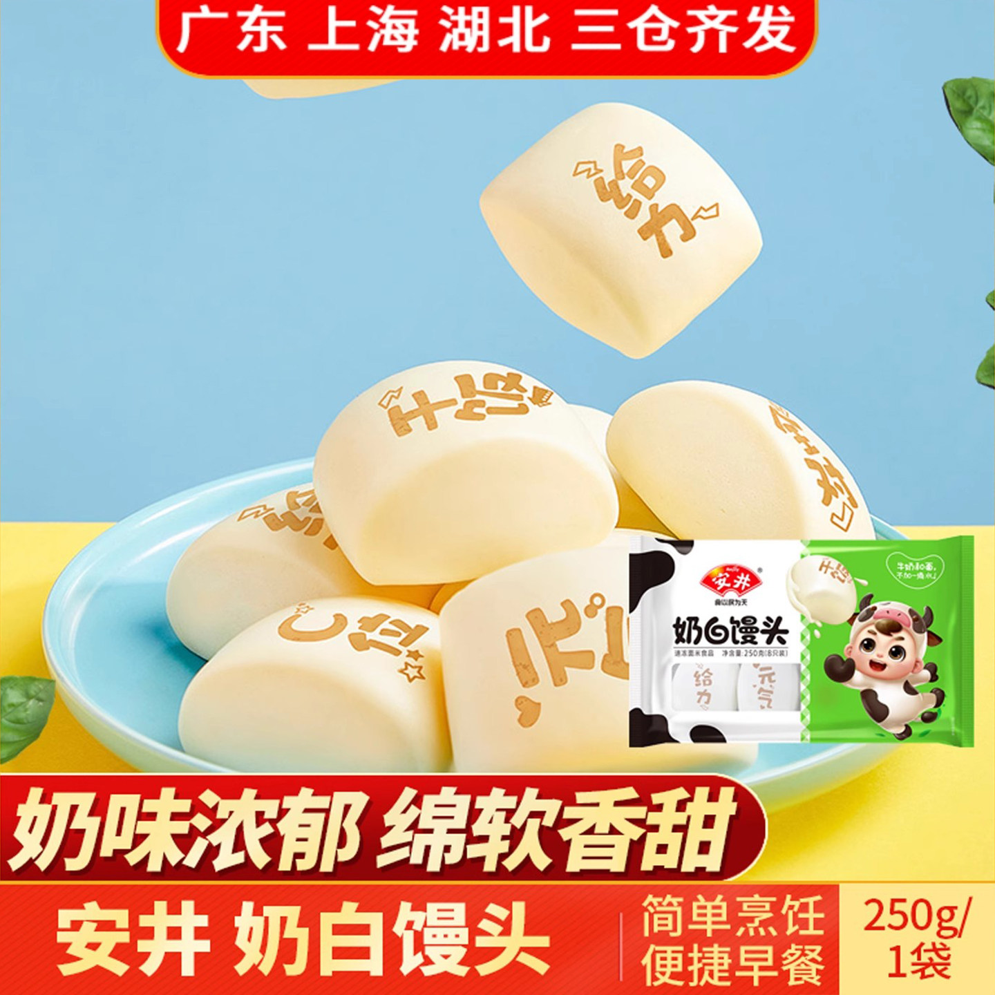 📚 安井奶白馒头250g印字奶香儿童早餐松软香甜卡通儿童点心早餐面点