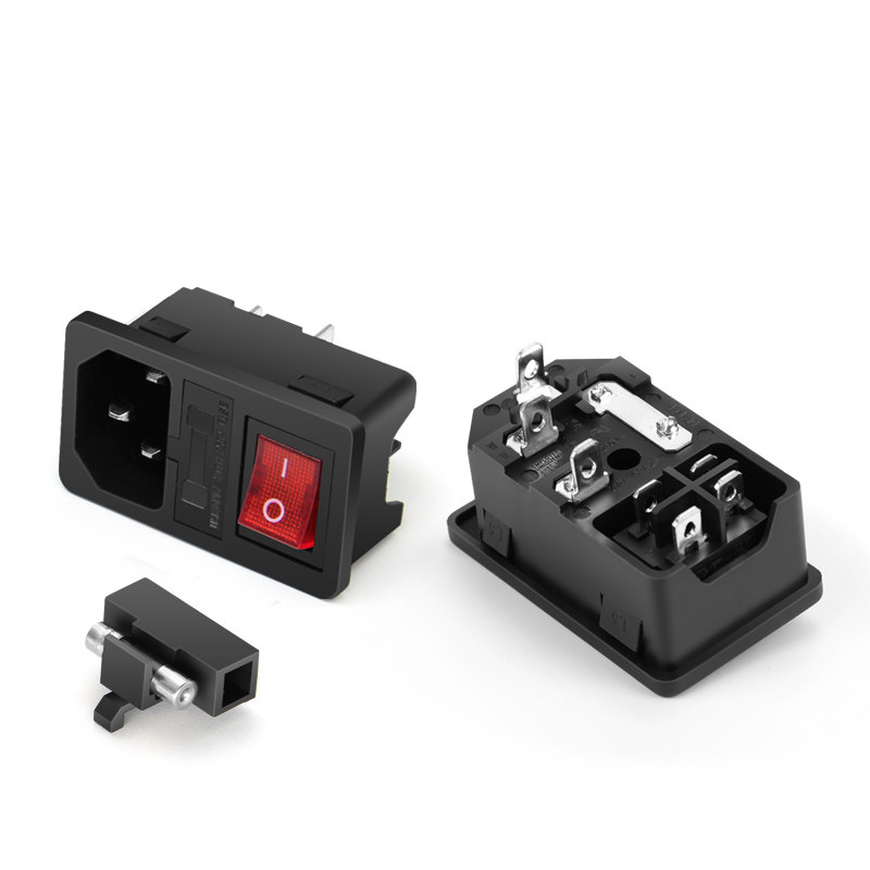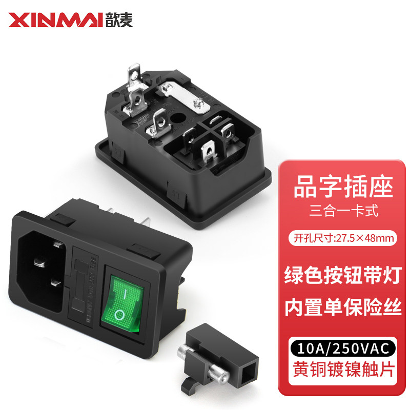📚 AC电源插座 带灯带保险丝卡式品字插座 设备电源插座 机箱插座