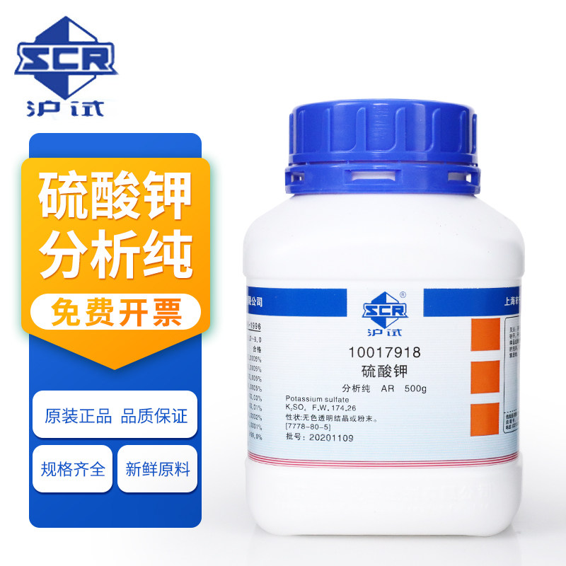 📚 硫酸钾 分析纯 国药沪试化学试剂AR 500g 沪试含量≥99.0% 无色透明结晶或粉末