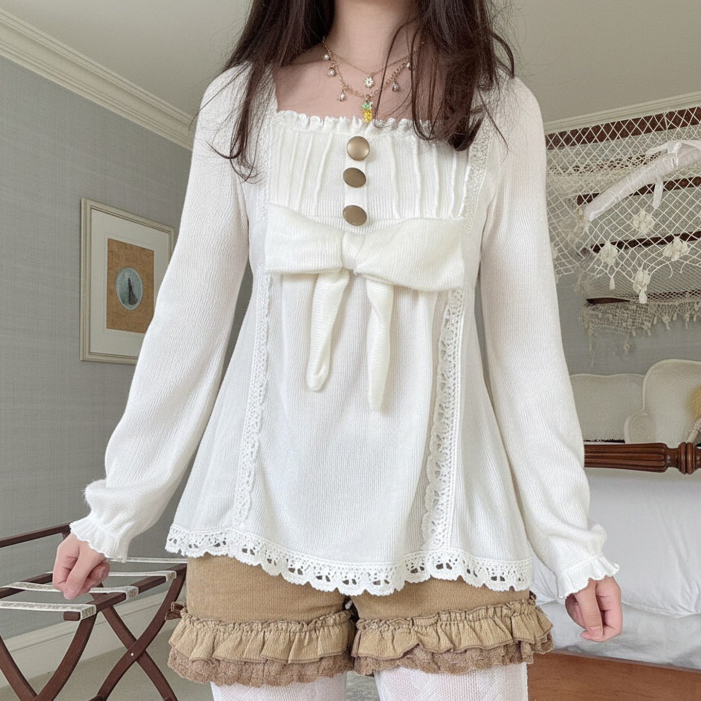 📚 Girl's minimalist long sleeved T-shirt 可爱风A摆娃娃衫上衣女