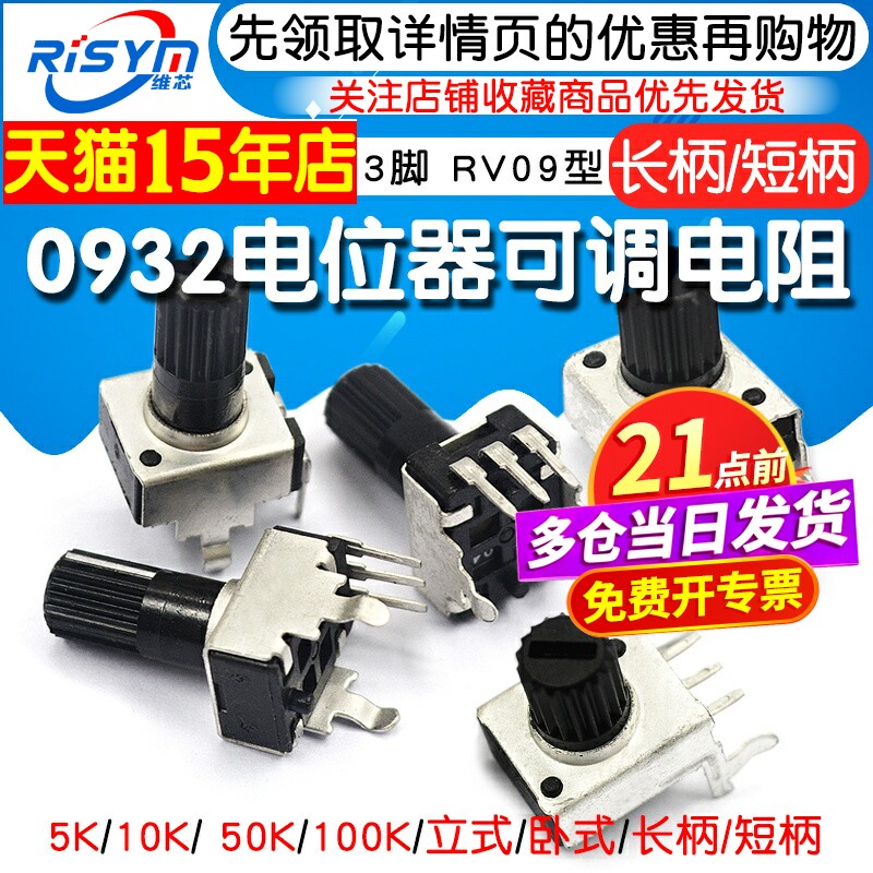📚 0932电位器 立式/卧式10K50K100K5K1K2K 103可调电阻RV09型12.5MM