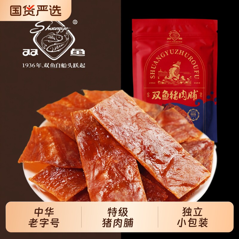 📚 双鱼牌猪肉脯358g靖江特产休闲零食猪肉铺散称独立小包装猪肉干片