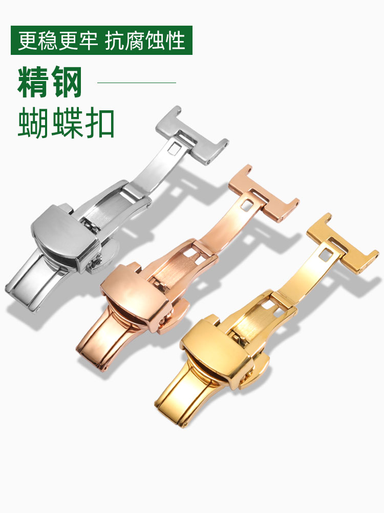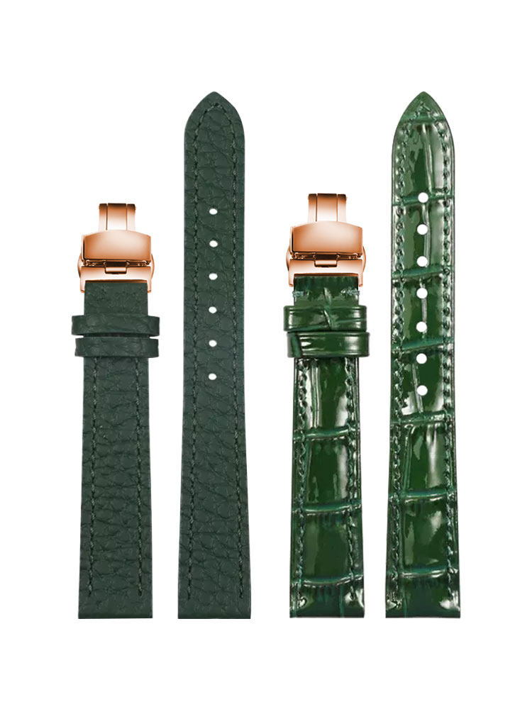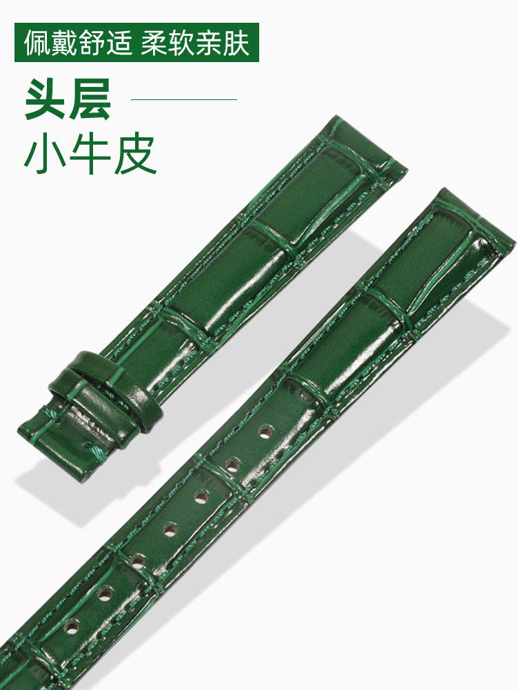 📚 适配万国真皮手表带 男女蝴蝶扣表链飞亚达 浪琴 劳力士绿色表带