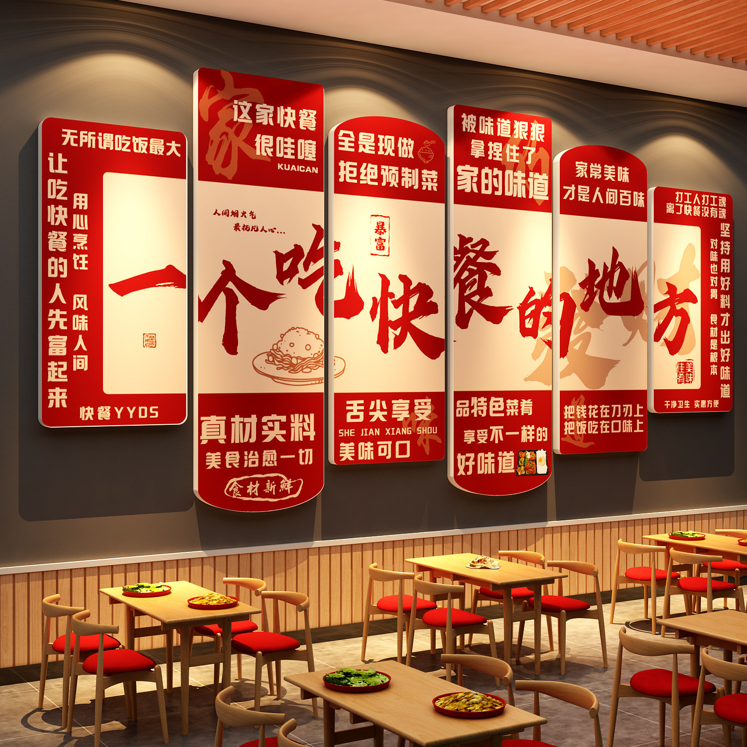📚 自选快餐店墙面装饰网红餐饮馆饭创意文化形象壁画贴食堂小吃海报