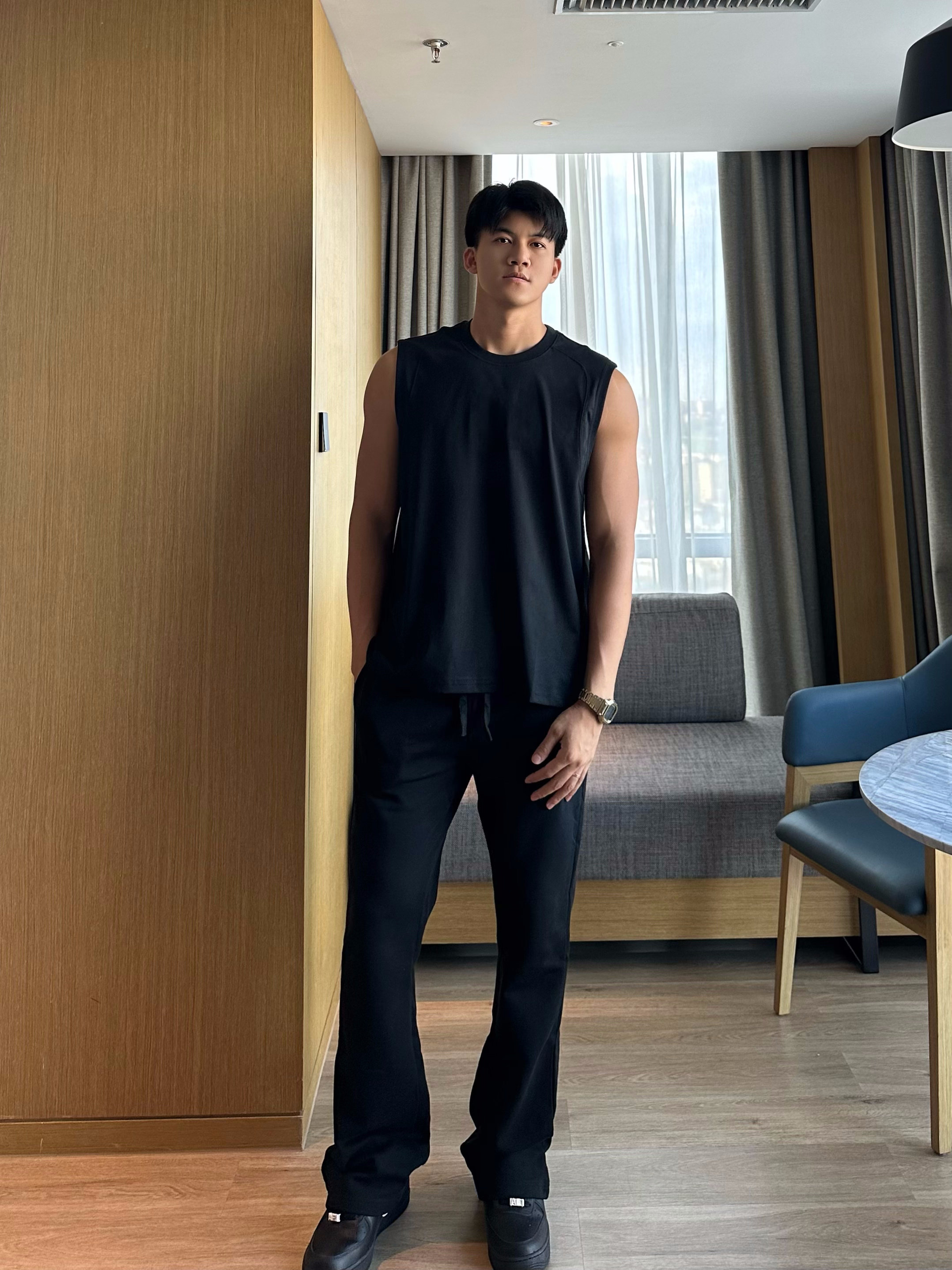 📚 JZD 浅灰/杏/黑/春装美式高街微喇显高显瘦卫裤运动百搭休闲长裤