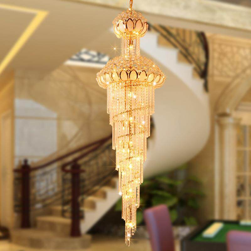 📚 别墅楼梯水晶灯金色客厅灯具大气创意吊灯餐厅灯过道大堂酒店灯饰