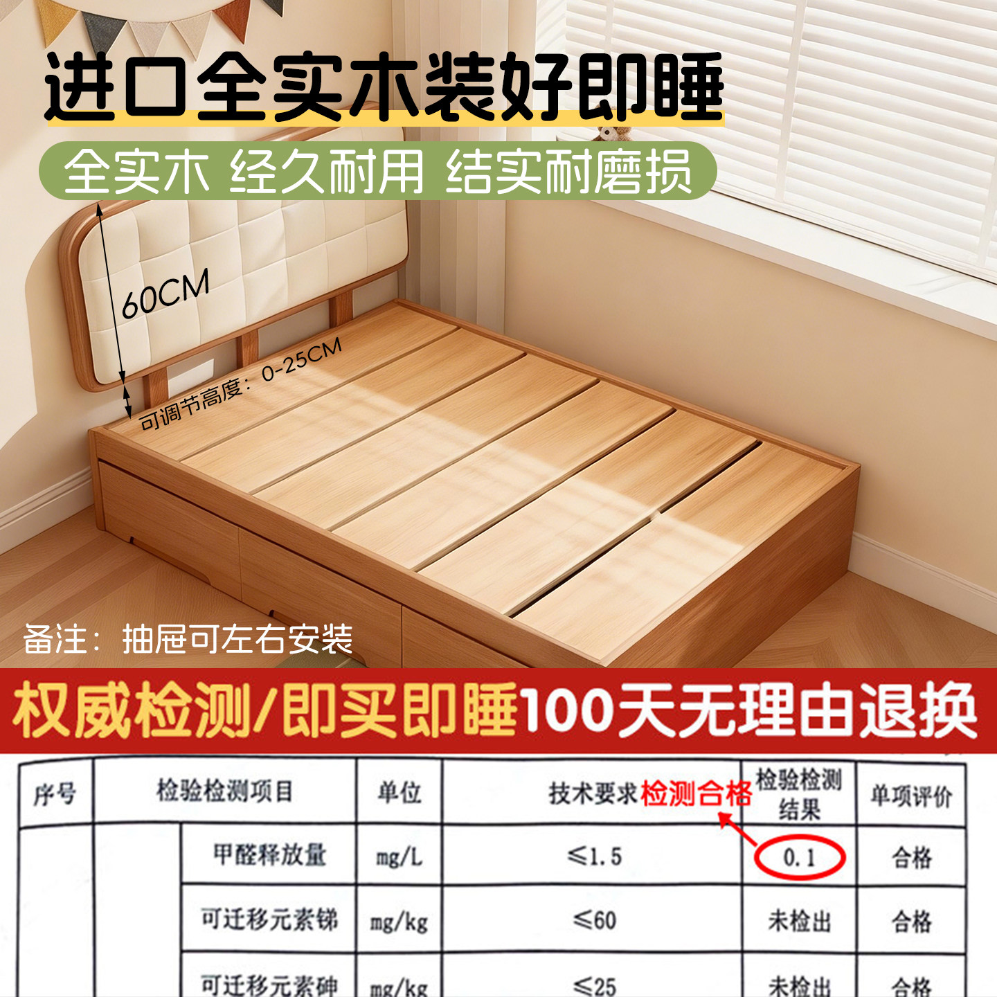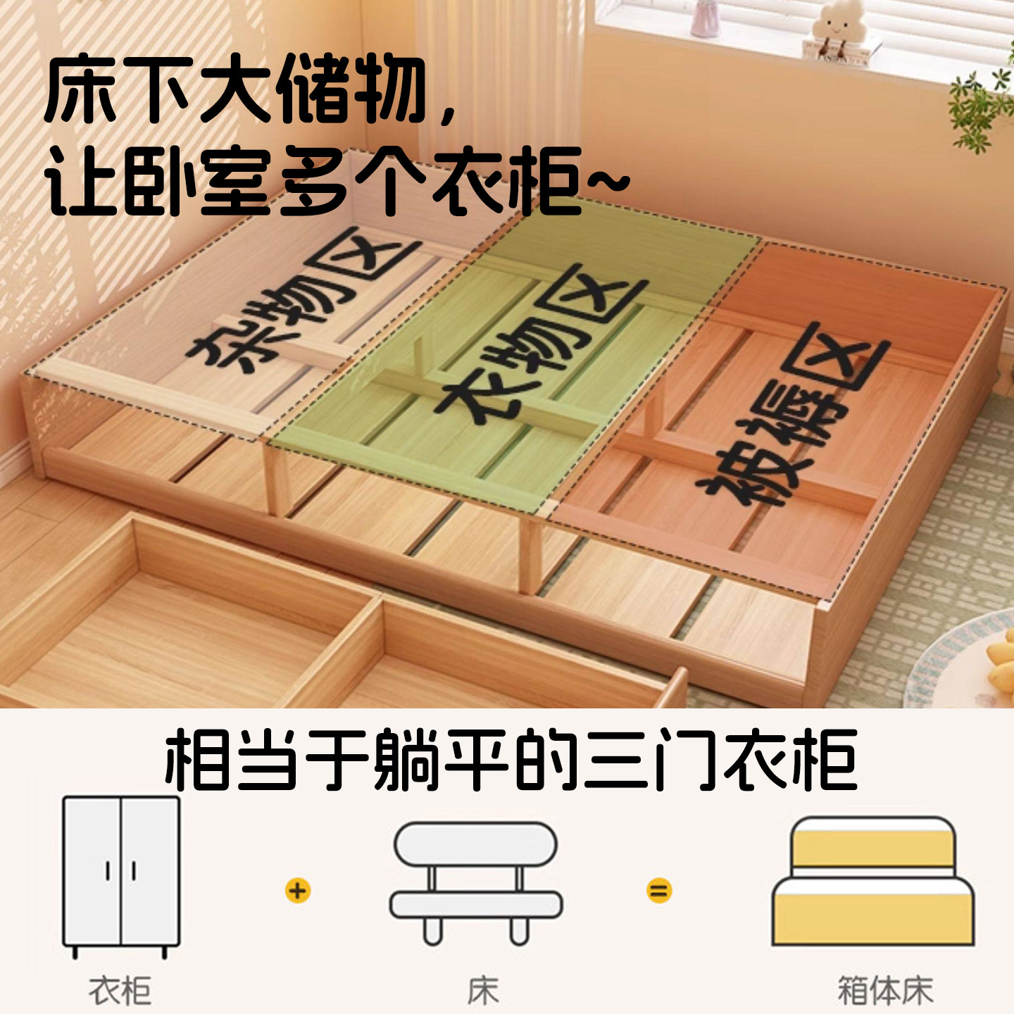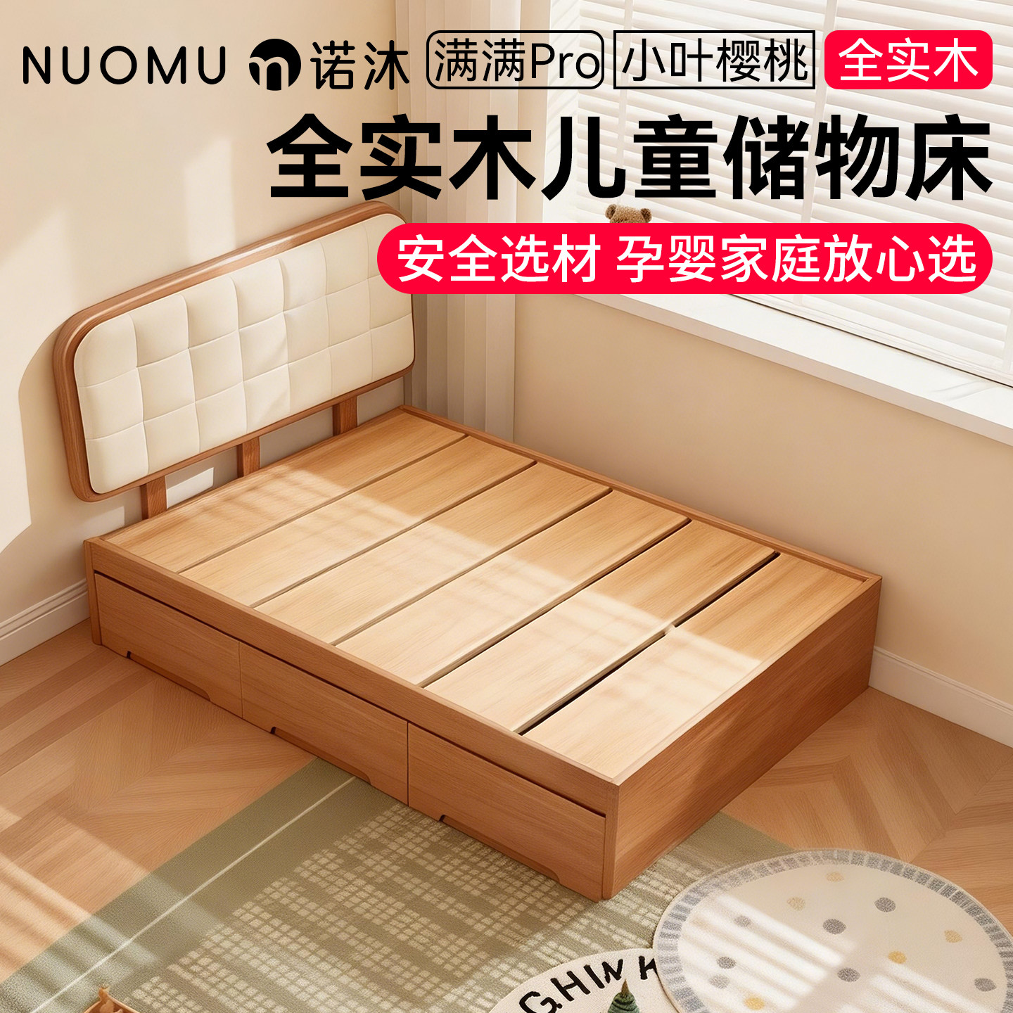 📚 榻榻米落地床抽屉带储物全实木软包儿童储物床小户型家用1米5单人