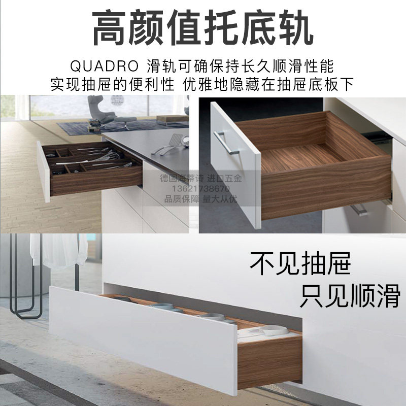 📚 海蒂诗托底轨道QVS抽屉导轨推入式全拉18板隐藏抽屉集成阻尼滑轨