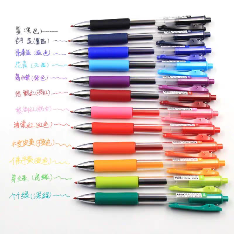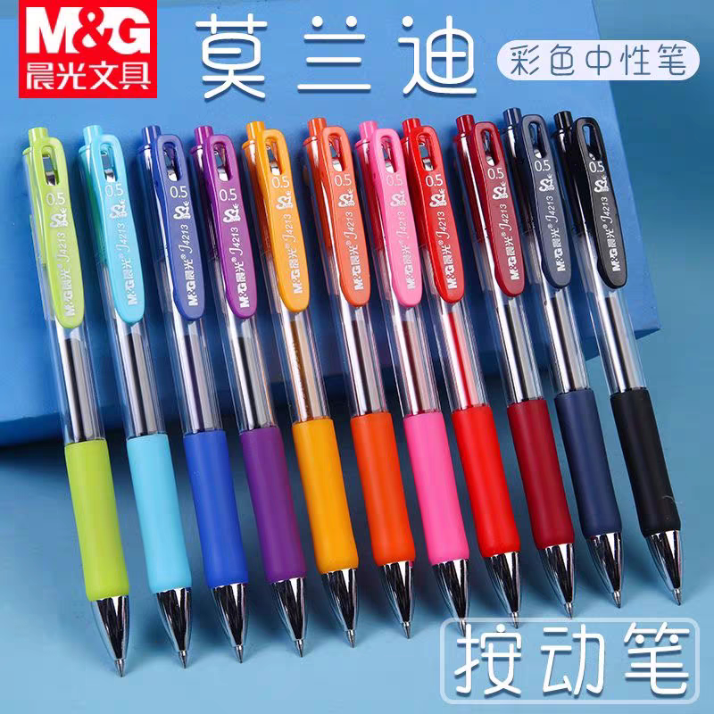 📚 晨光J4213大角度笔夹速干按动笔子弹头水笔0.5彩色混色粉绿紫橙蓝
