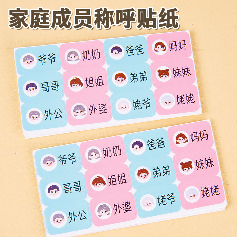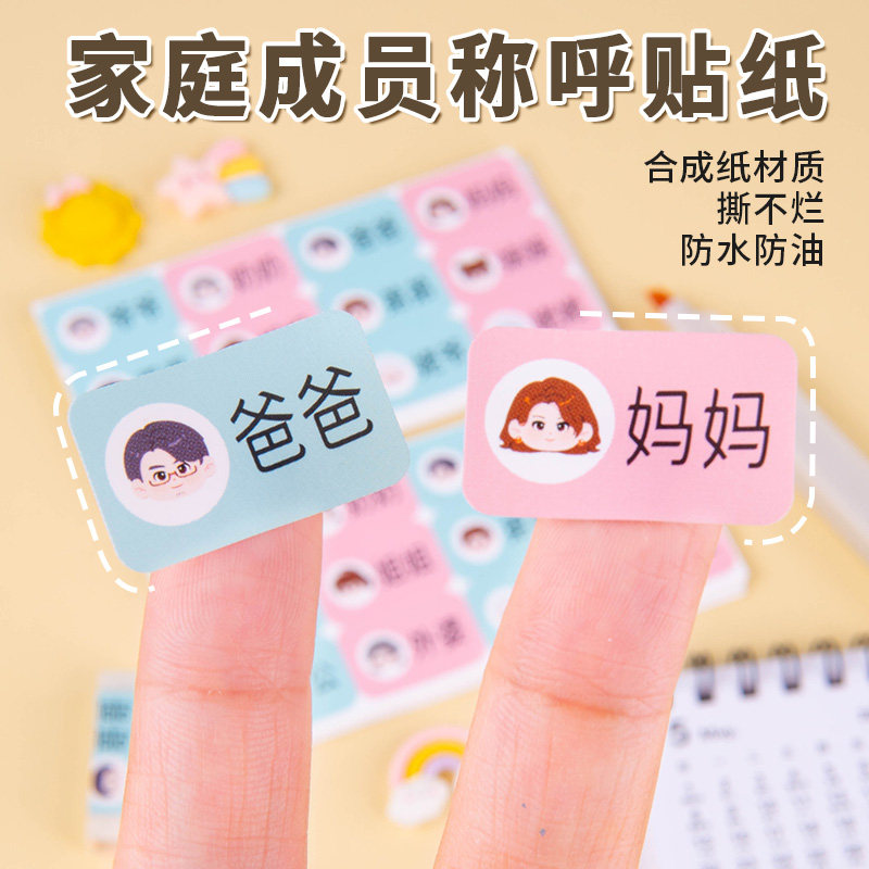 📚 爸爸妈妈家庭成员分类贴纸不干胶牙刷杯洗脸盆水杯子识别衣服玩具 透明PVC防水标签爷爷奶奶彩色头像提示贴