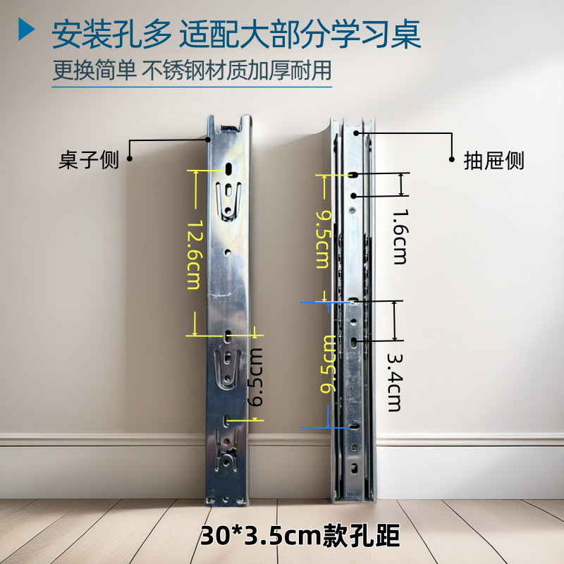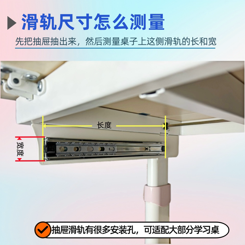 📚 适配护童爱果乐黑白调学习桌抽屉滑轨轨道静音三节电脑桌导轨滑道