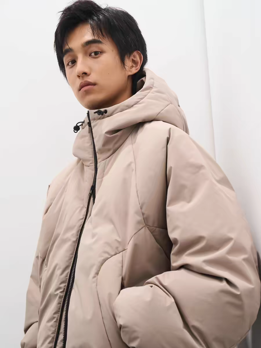 📚 subtraction of宽松蝙蝠袖设计连帽外套白鸭绒高蓬松度羽绒服男女