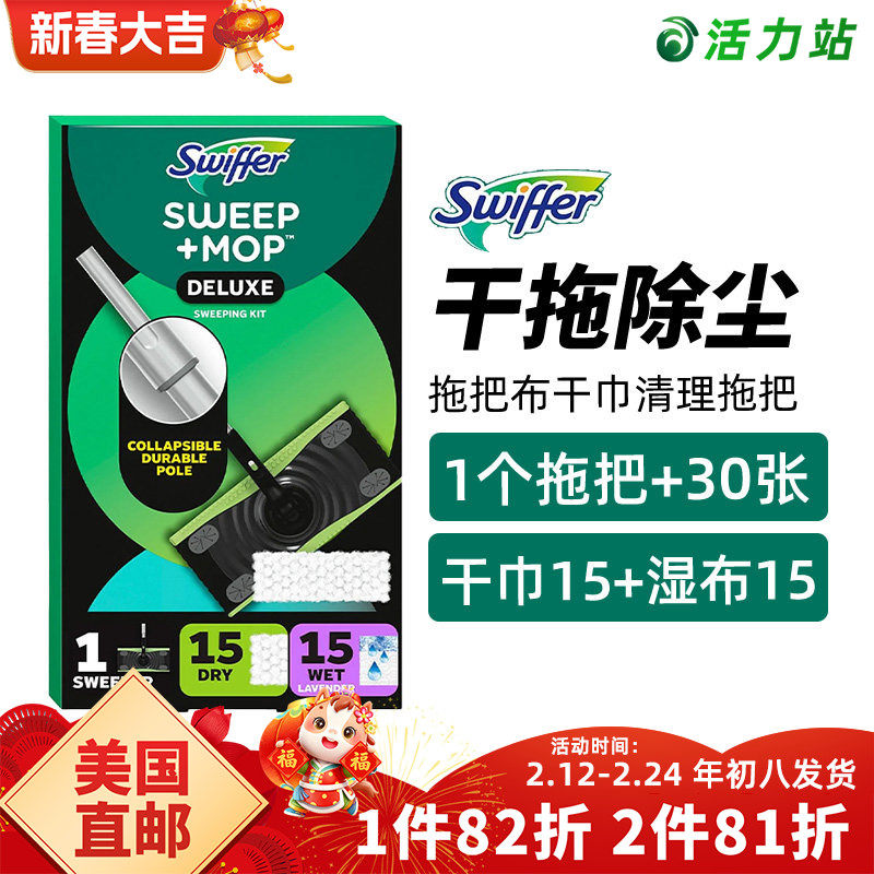 📚 美国直邮 SWIFFER2合1清洁拖把套装干巾湿巾除尘污渍头发可折叠杆