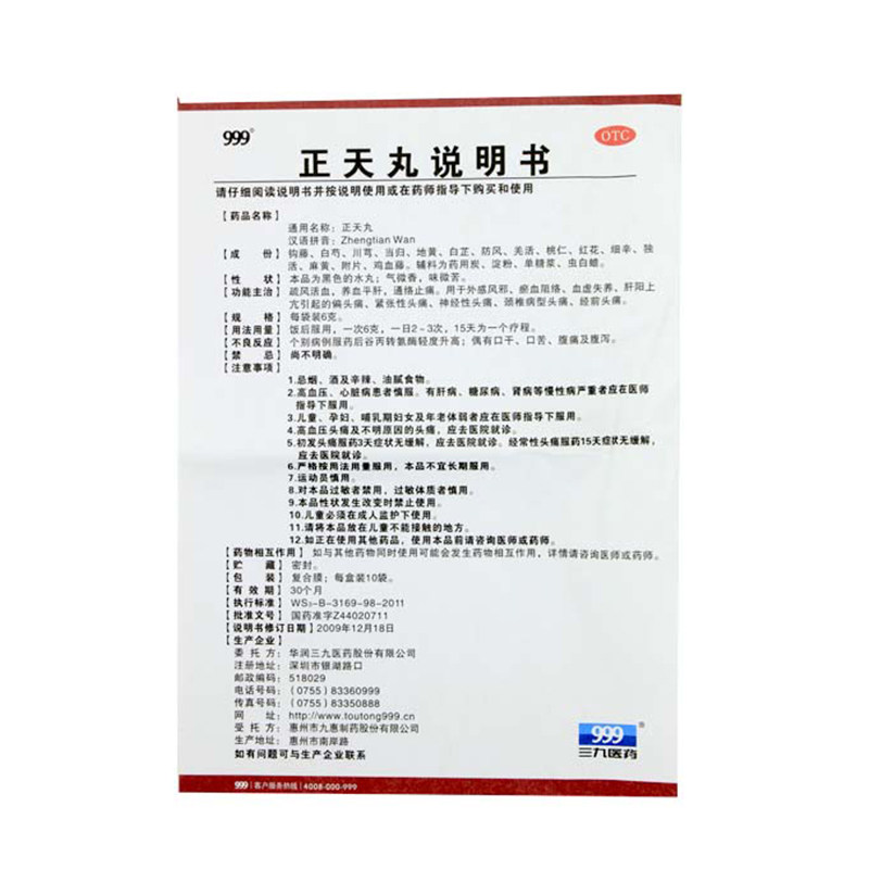 📚 999正天丸6g*10袋/盒 治头痛神经性缓解偏头痛宁天正丸华润三九