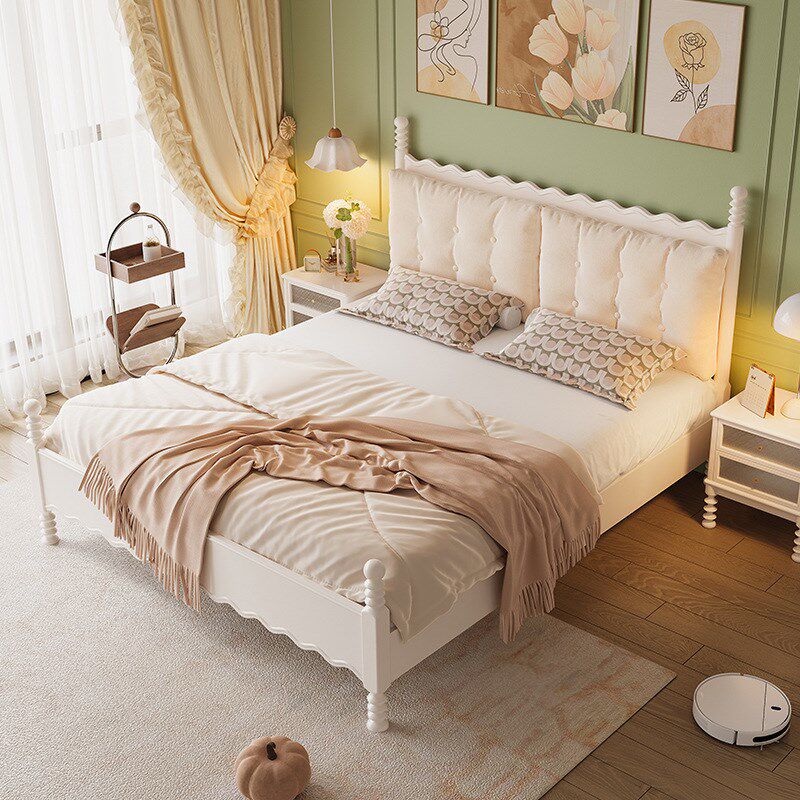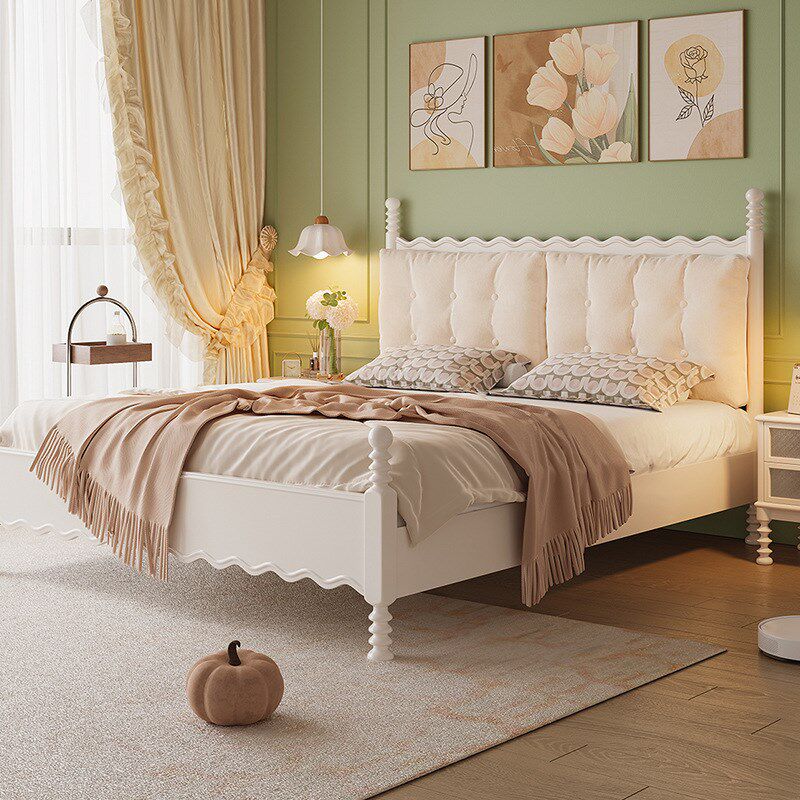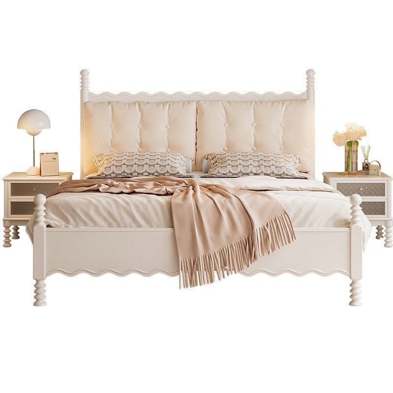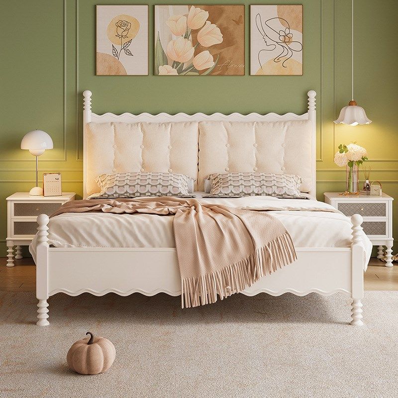 📚 实木软靠包床1米5单人床架主卧法式奶油风一米八双人白色公主床铺