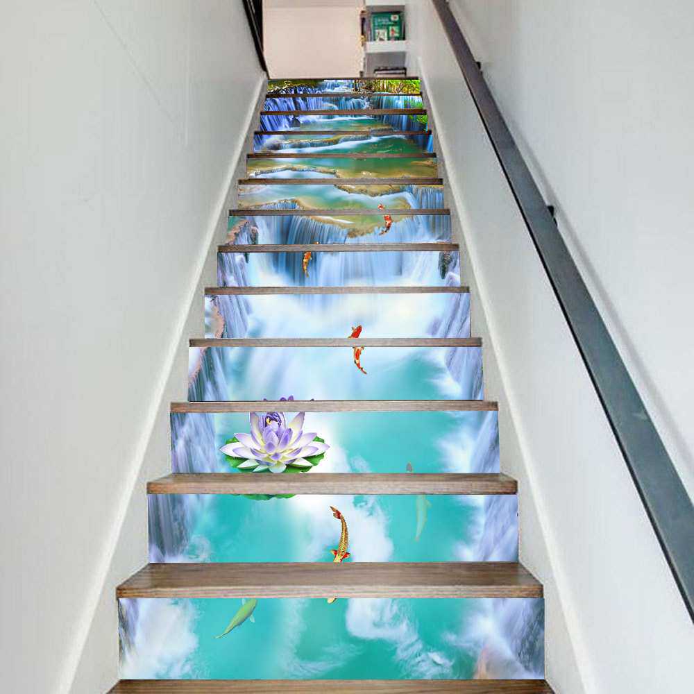 📚 热销款莲花瀑布自然风景楼梯装饰墙贴自粘可移除防水PVC装饰壁画