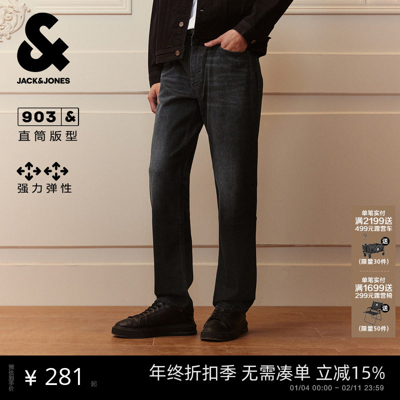 📚 [高弹]903杰克琼斯男装秋季复古水洗宽松直筒牛仔裤男款长裤子