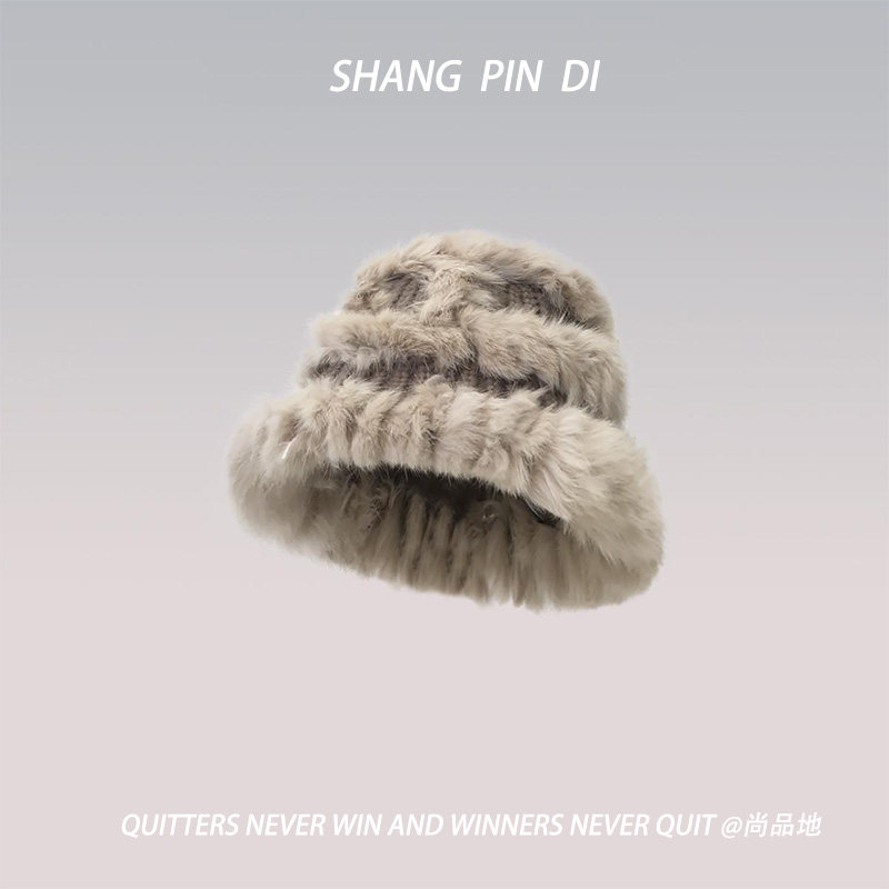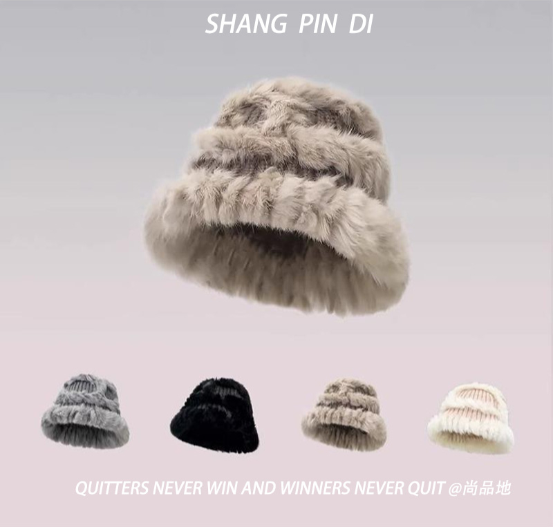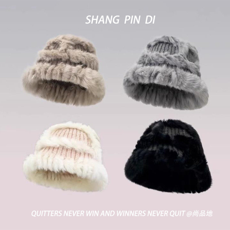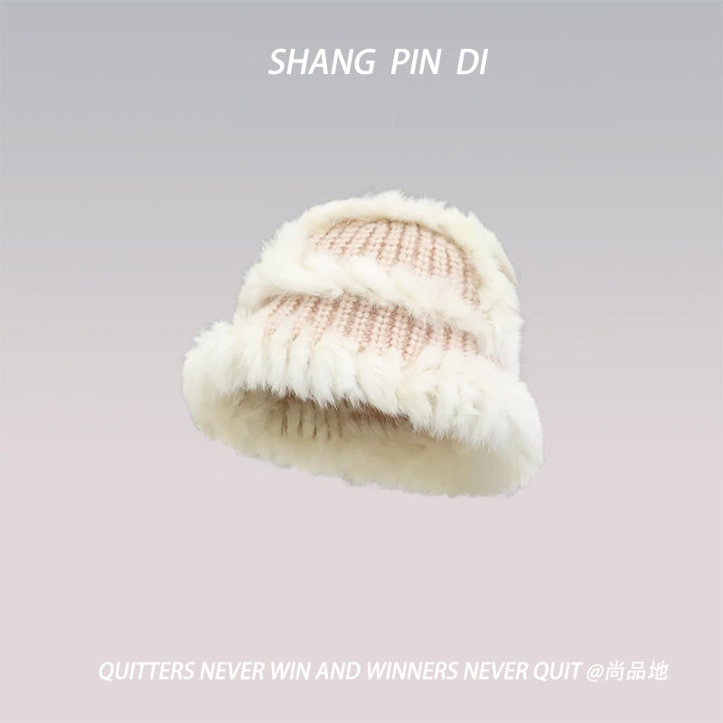 📚 真兔毛针织帽女秋冬保暖毛线帽防寒毛绒绒包头显脸小皮草渔夫帽