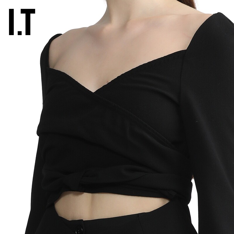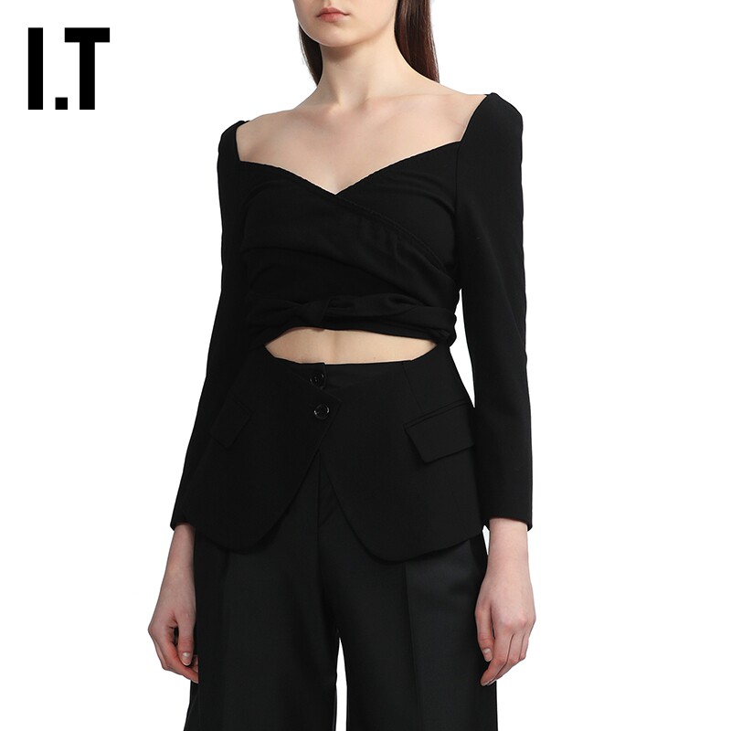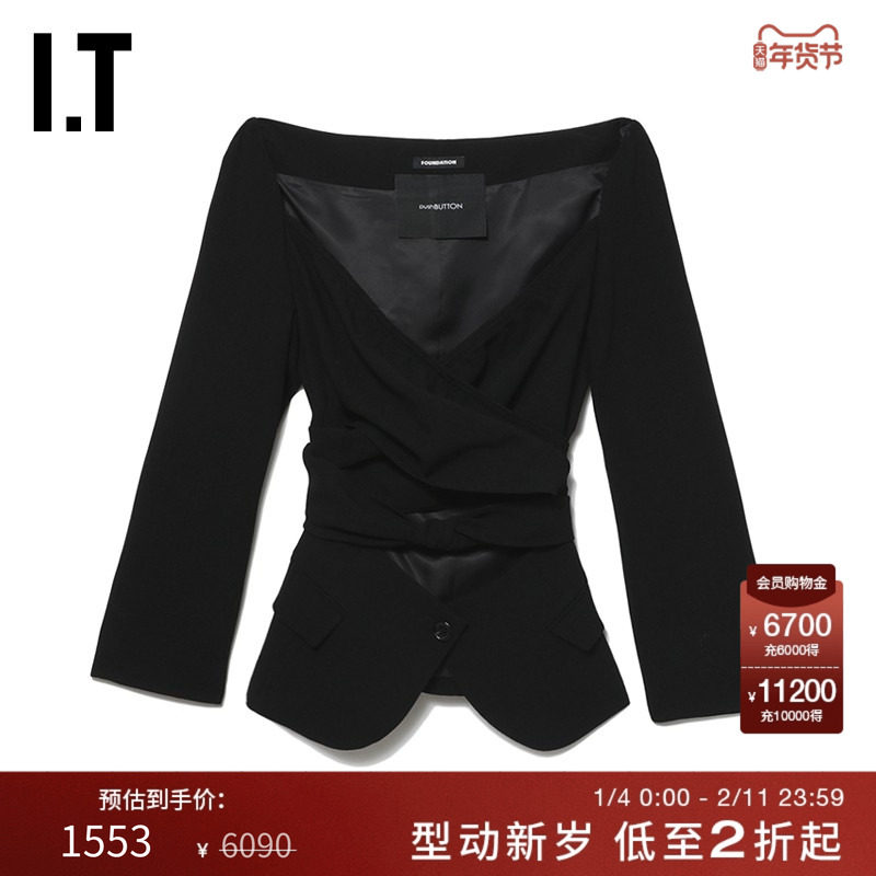📚 IT pushBUTTON女装交叉扭结西装夹克新品大开领镂空外套0113FDXK