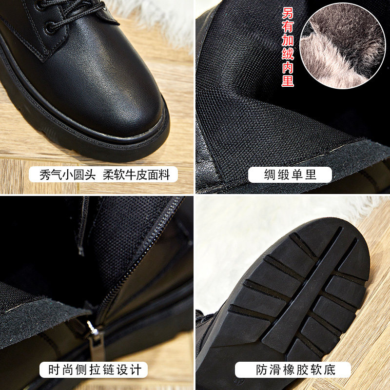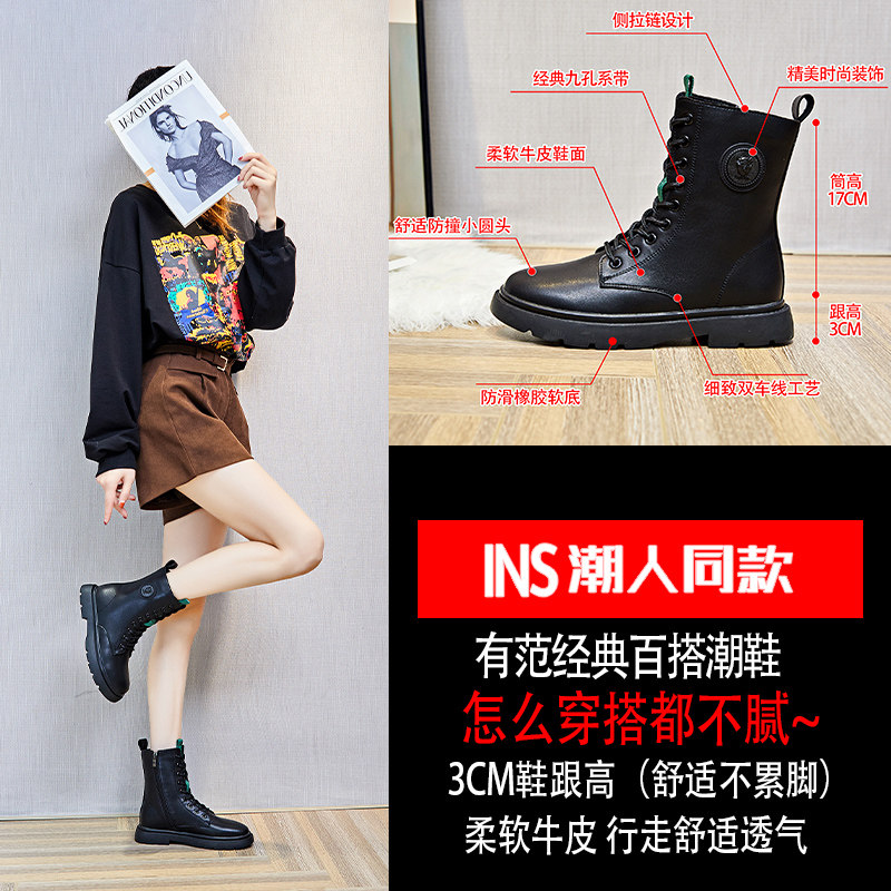 📚 软皮九孔马丁靴女潮ins酷中筒2025新款秋冬加绒侧拉链大码靴子41