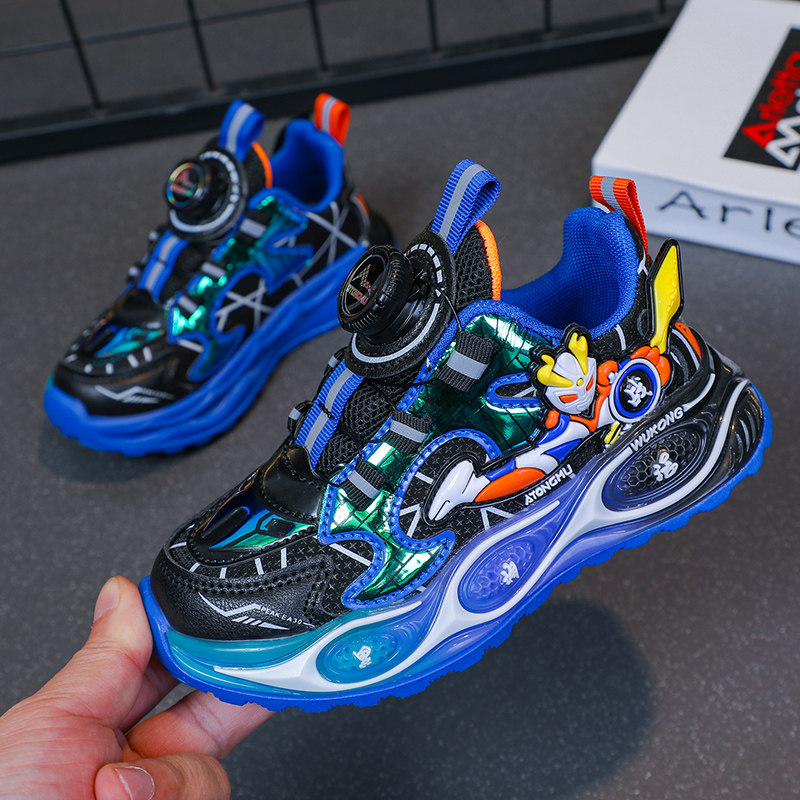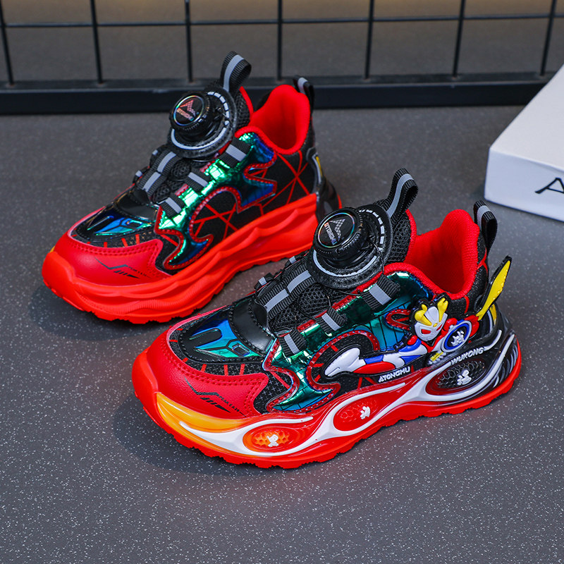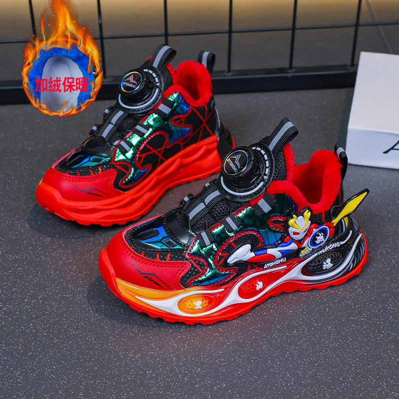 📚 皮面儿童二棉鞋运动男中童棉鞋冬奥特曼鞋子软底加绒纽扣鞋男童鞋
