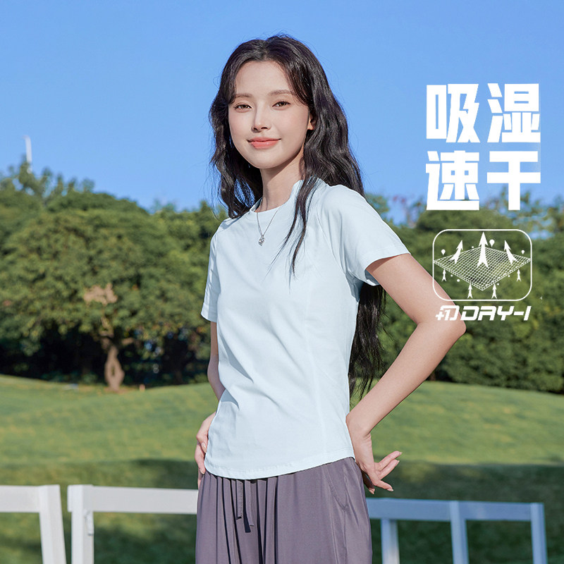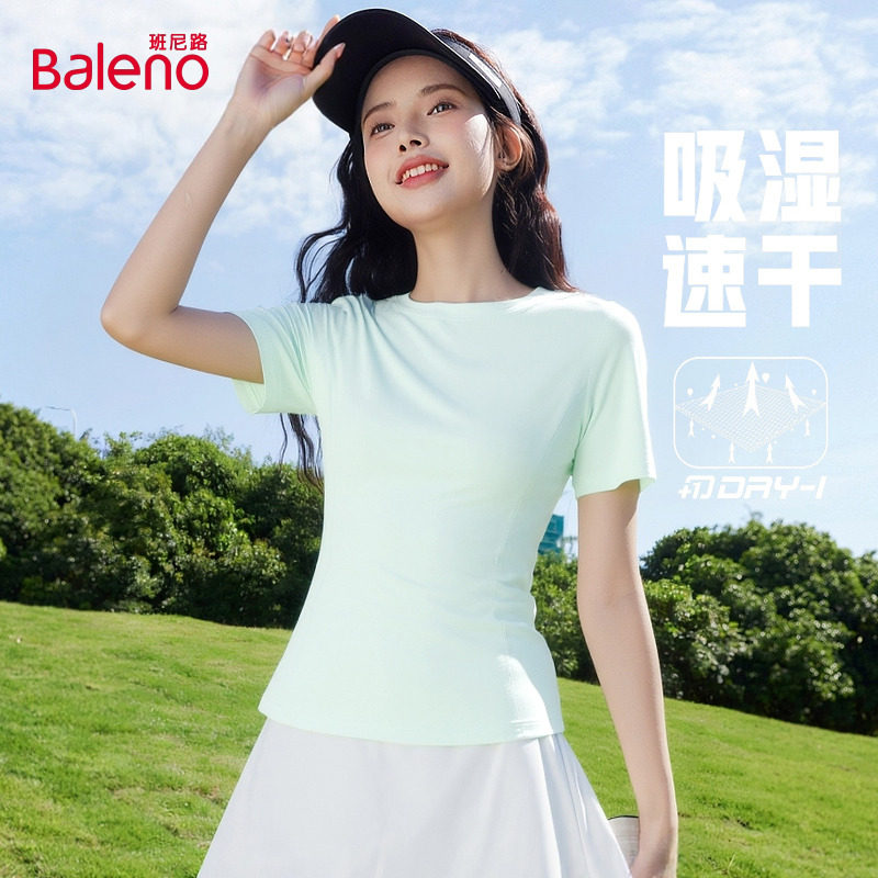 📚 班尼路速干衣女夏季薄款跑步运动健身瑜伽服修身上衣登山短袖t恤H