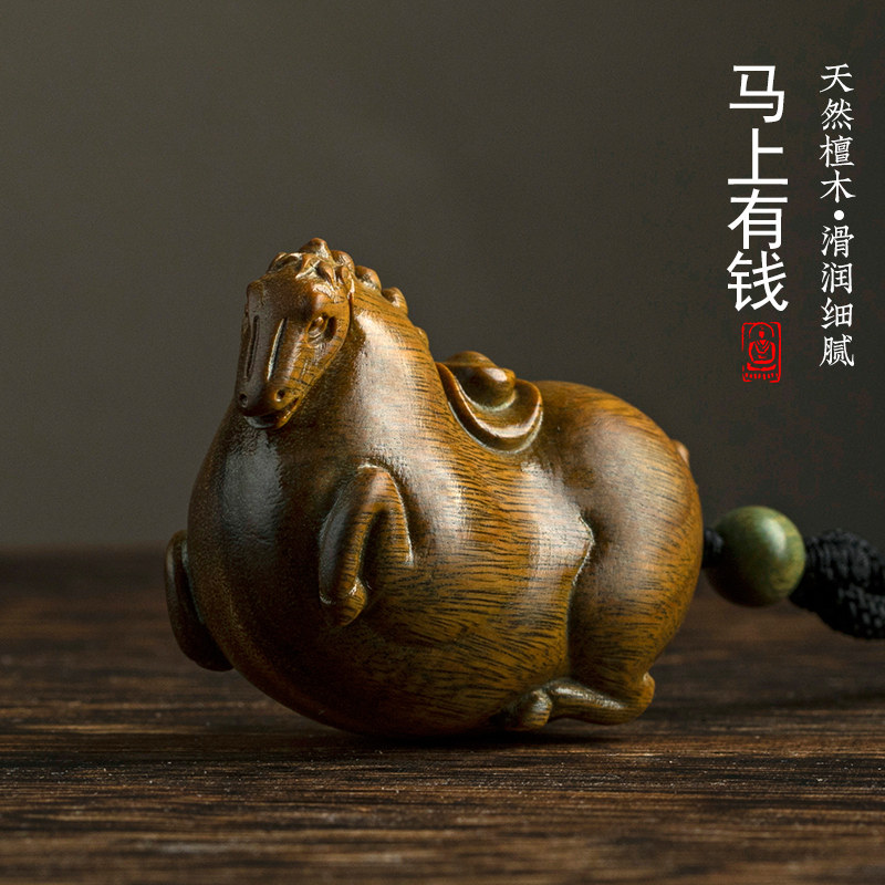 📚 生肖马上有钱绿檀木手把件文玩盘玩本命年男士随身手玩把件解压