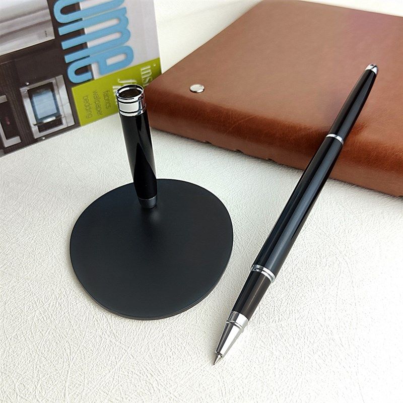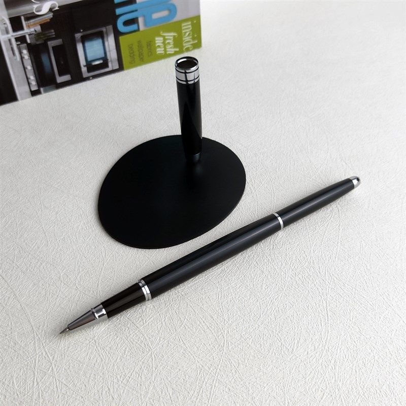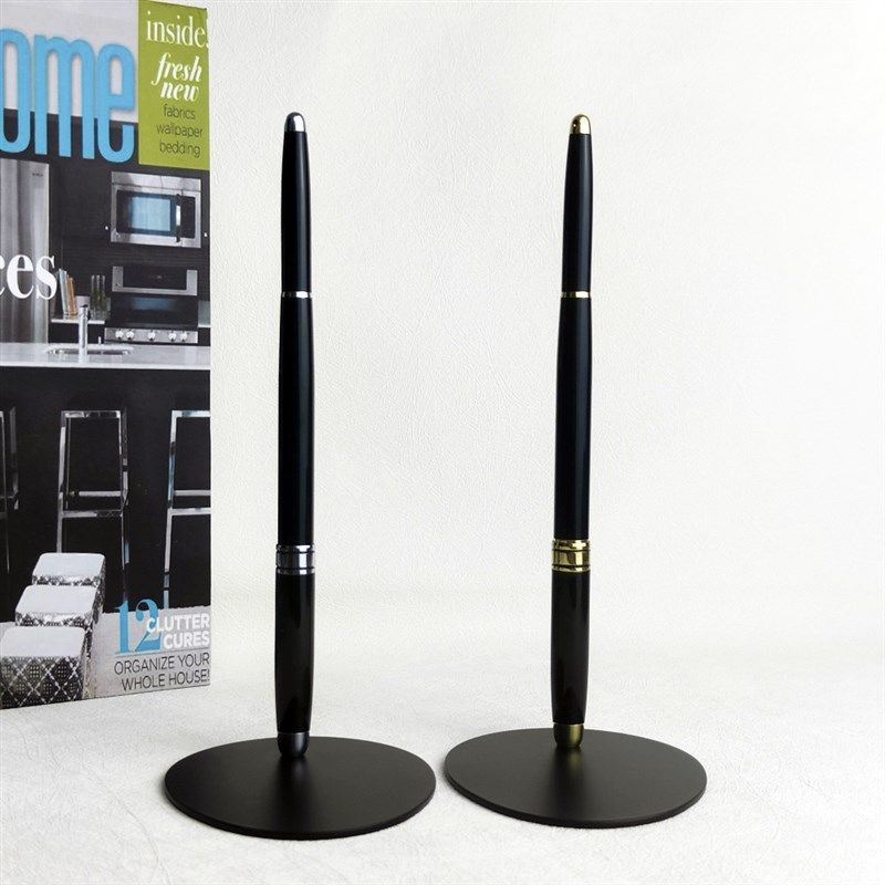 📚 桌面签字笔刻字定制LOGO签约仪式笔带线高档商务金属黑色固定台笔